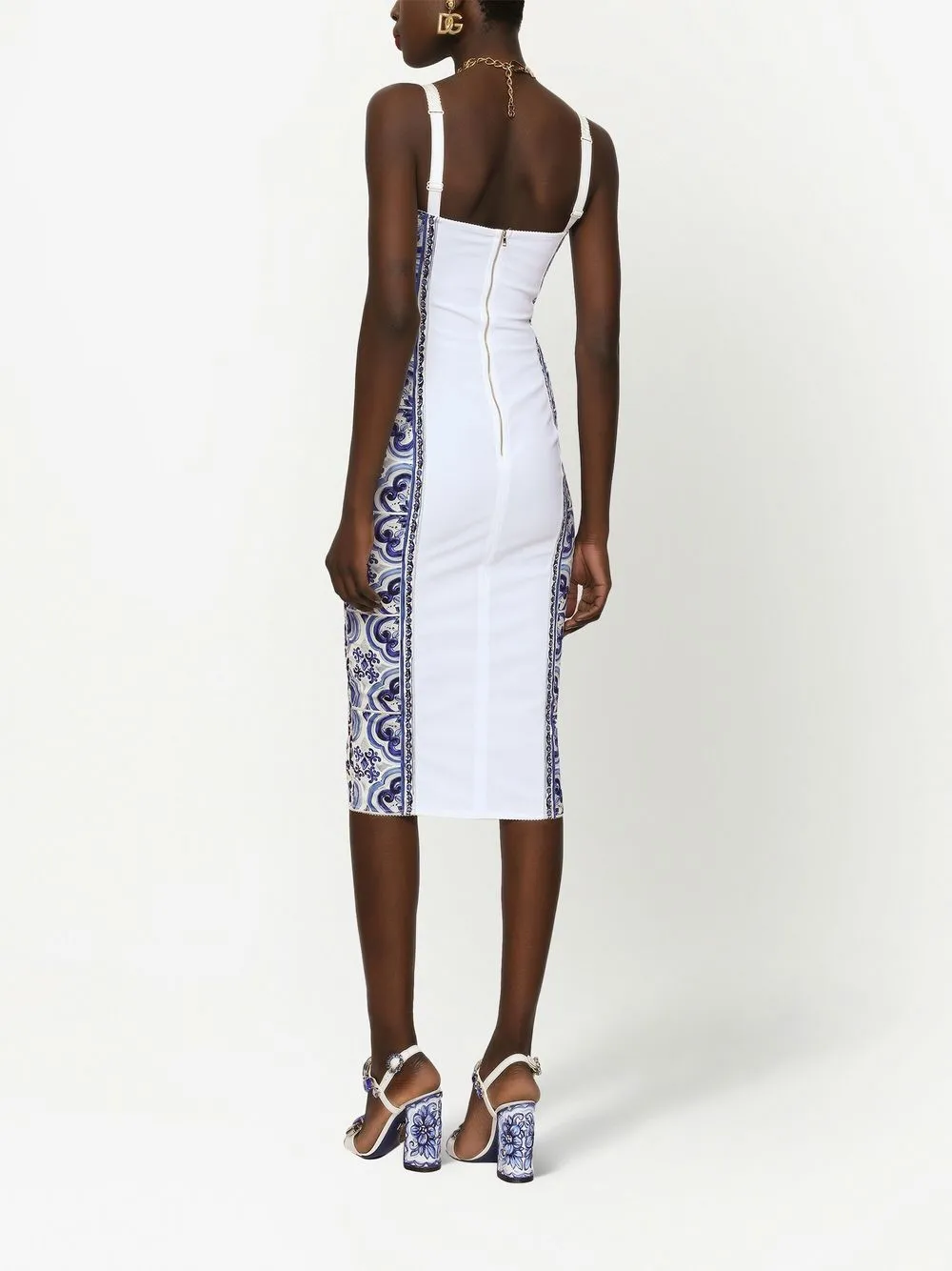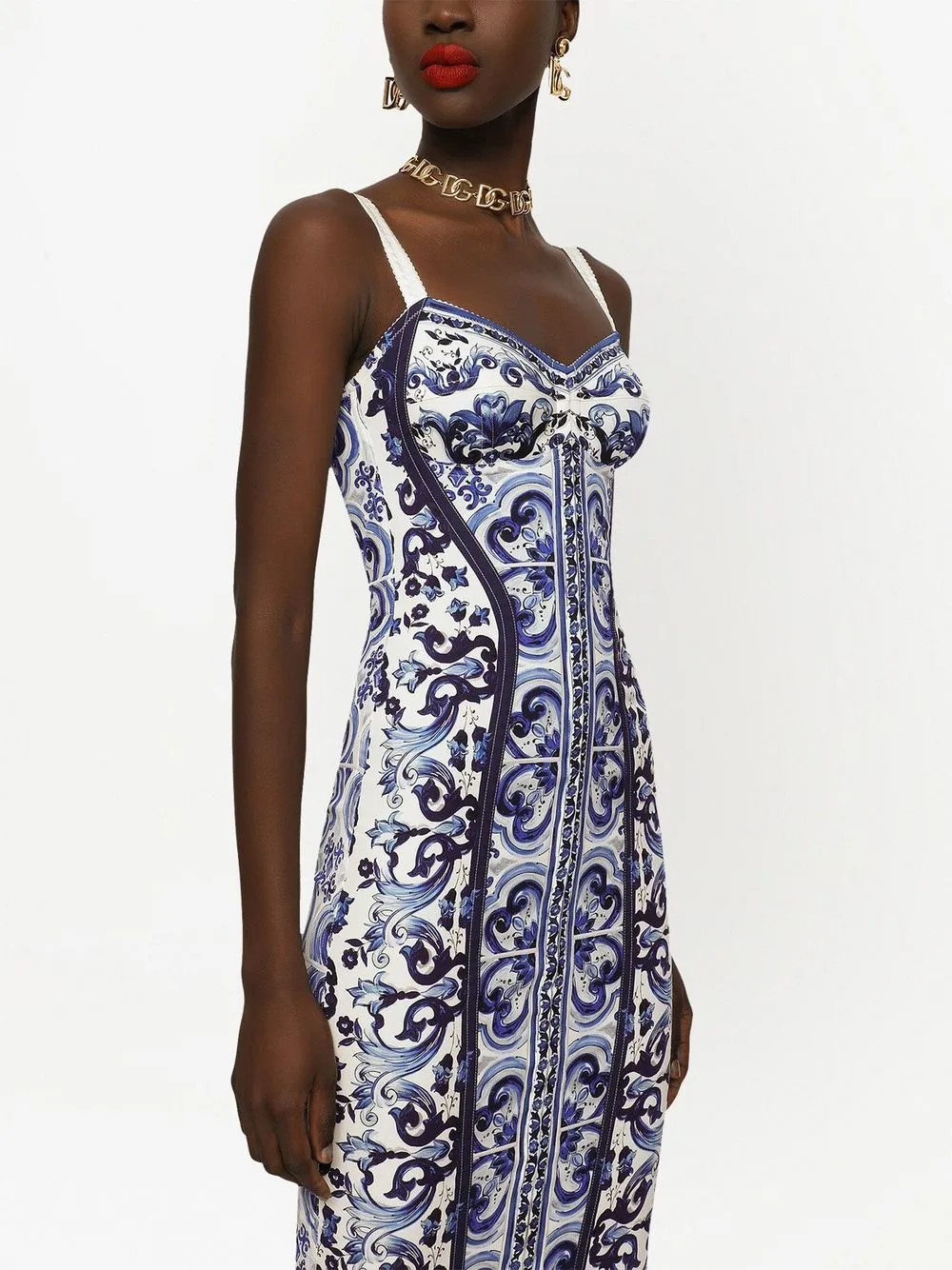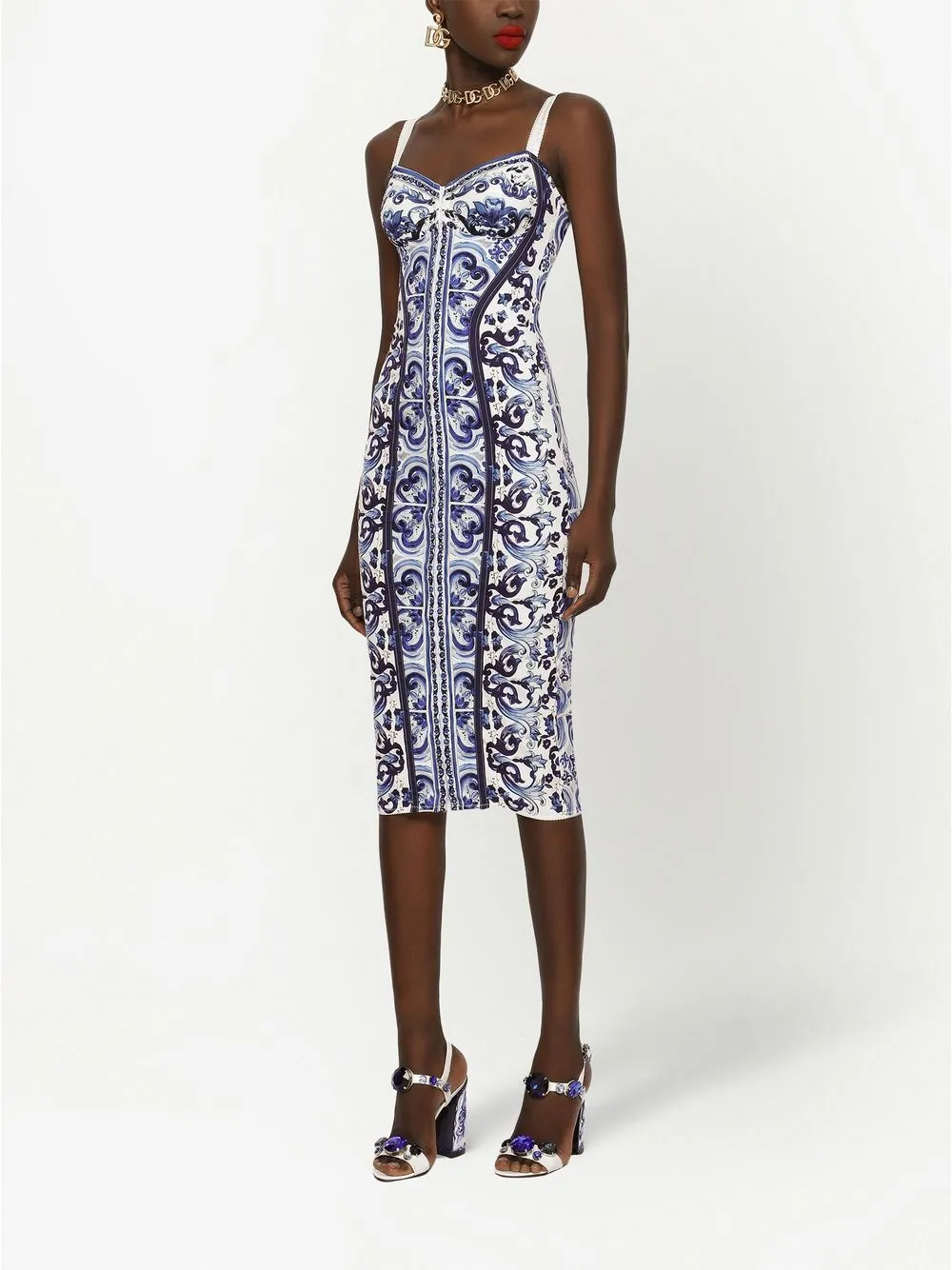 Платье с бюстье и принтом Majolica DOLCE & GABBANA, синий