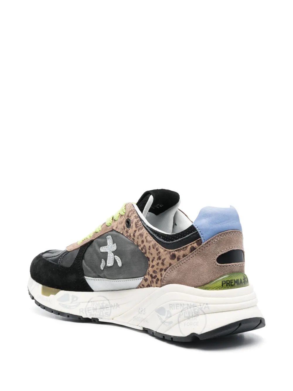 Разноцветный, телячья кожа, леопардовый принт, нашивка с логотипом на язычке, шнуровка спереди, кожаная стелька с логотипом, массивная подошва и закругленный носок.