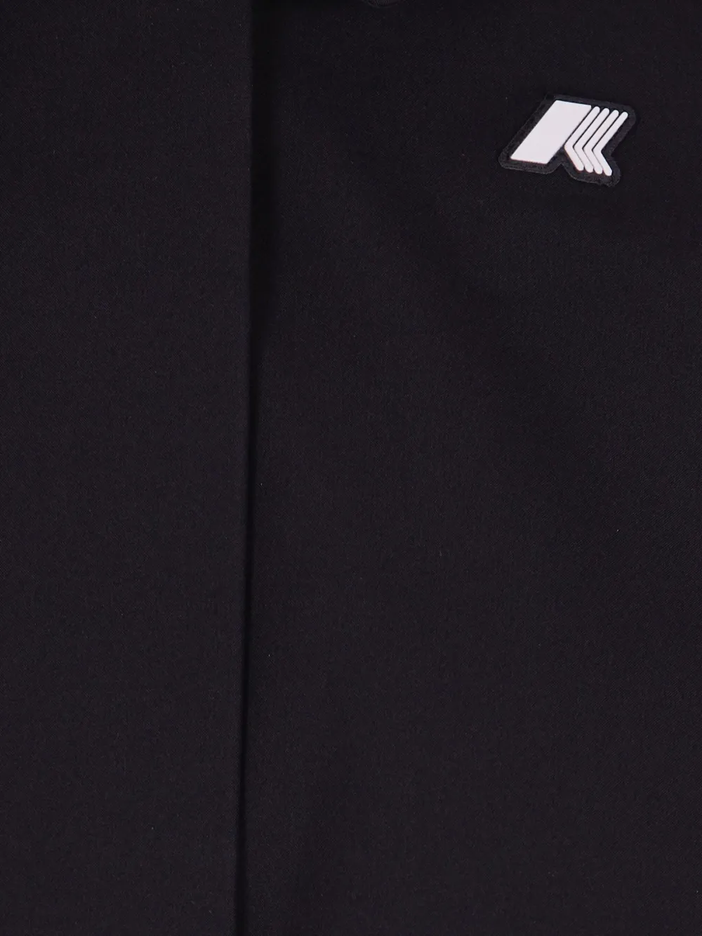 Черный капюшон с застежкой на пуговицы, длинные рукава, нашивка с логотипом.