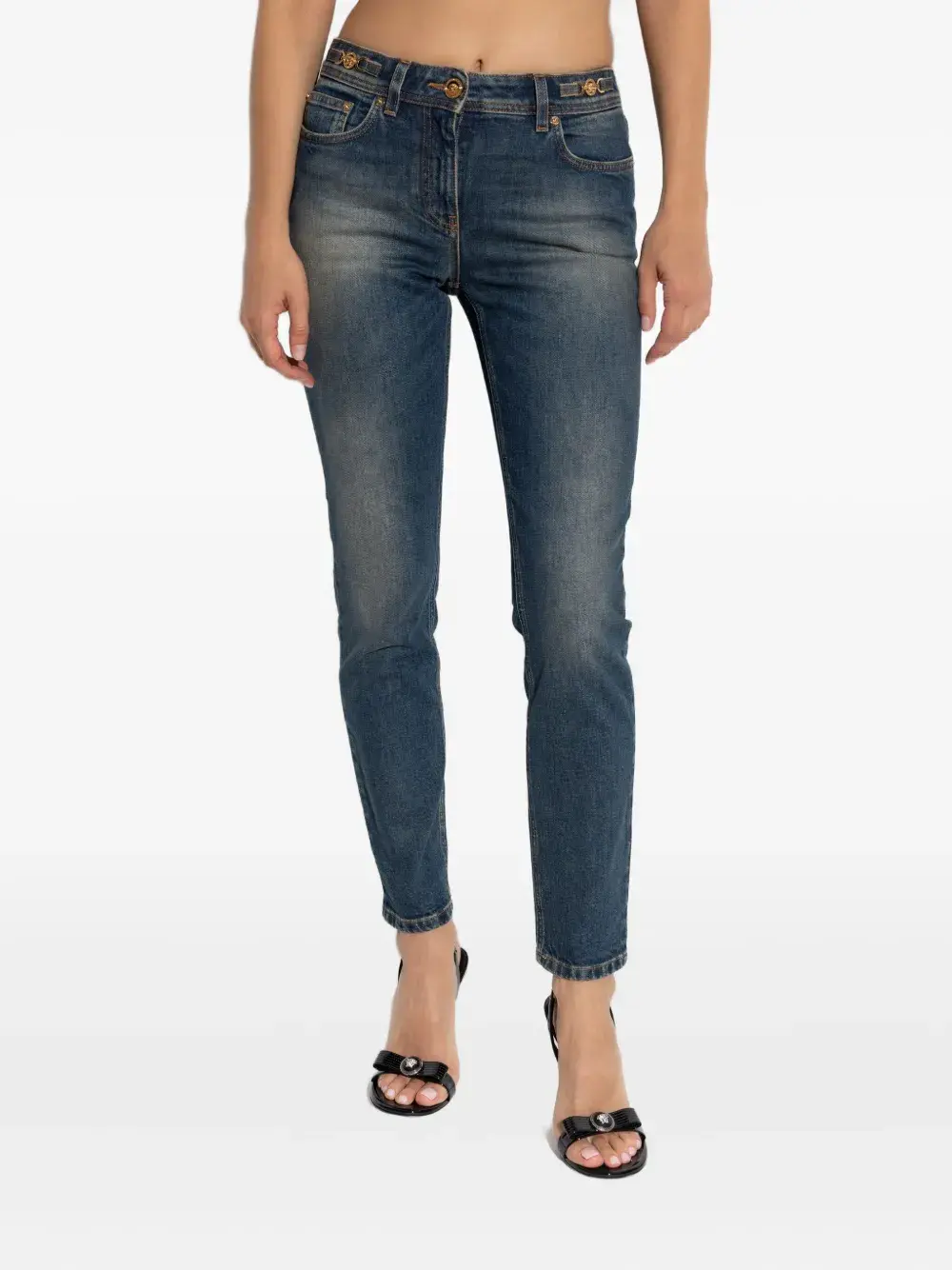 Джинсы с бляшкой Медузы VERSACE, синий