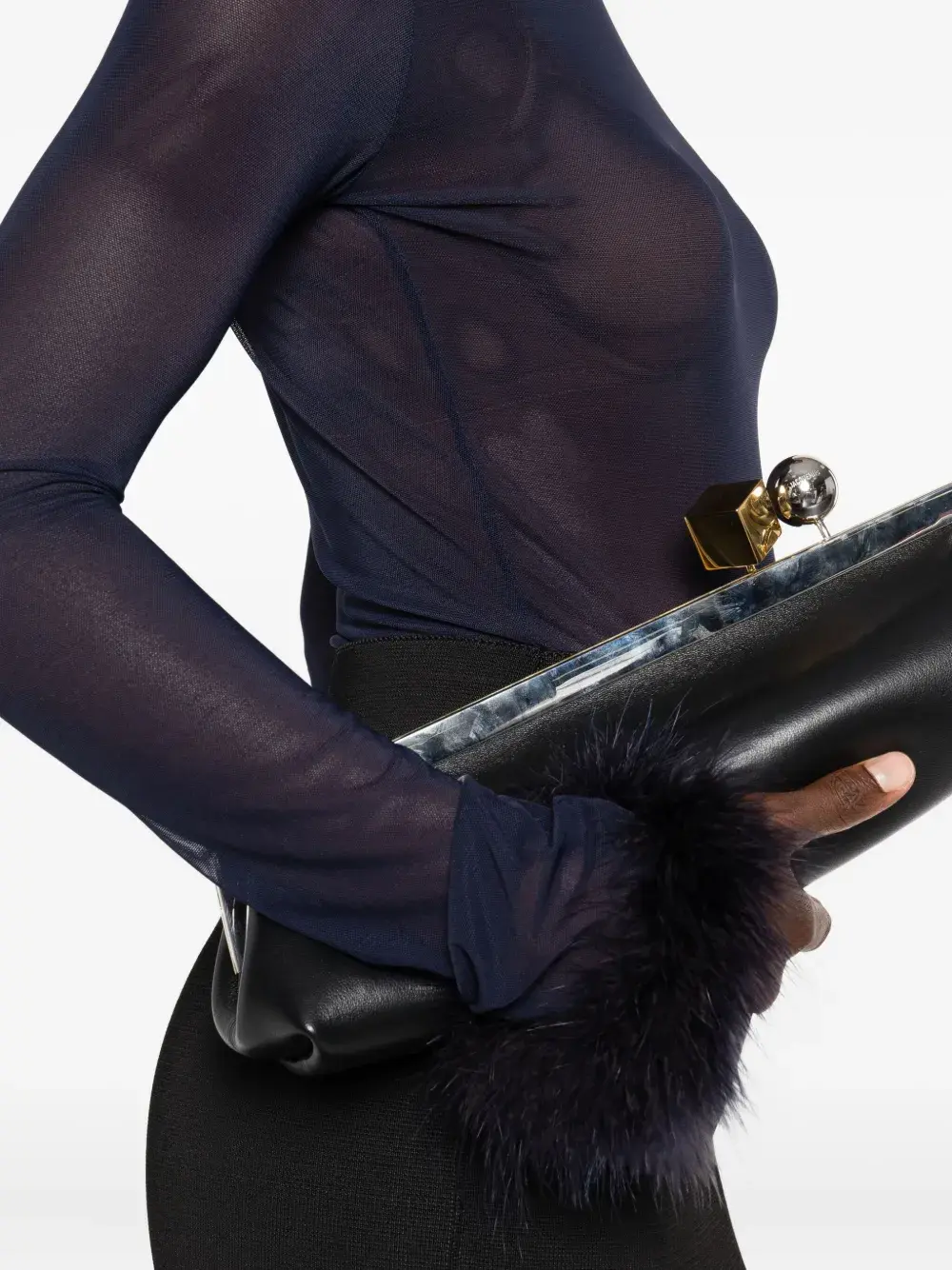 Топ из сетки с перьевыми манжетами Mugler, синий