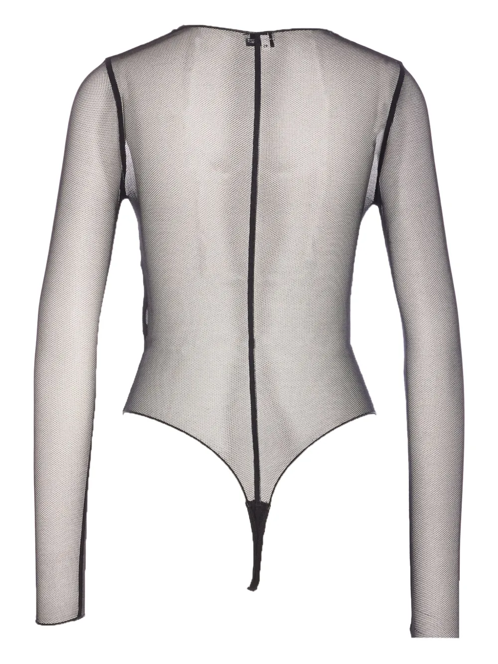 Сетчатый боди с длинными рукавами Elisabetta Franchi, черный