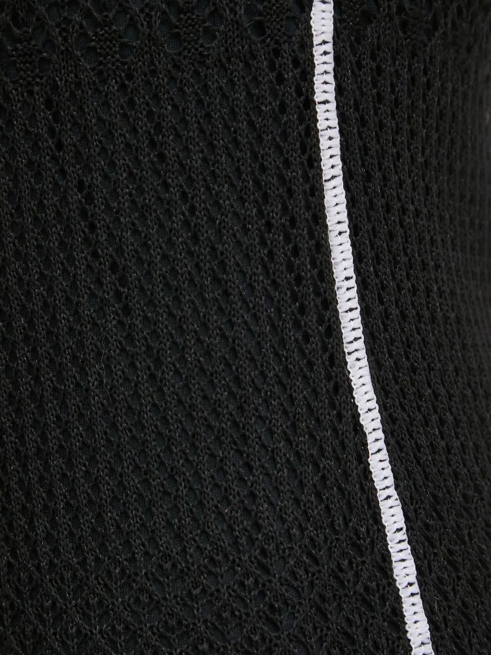 Черная сетчатая вставка, короткие рукава, ажурная вязка
