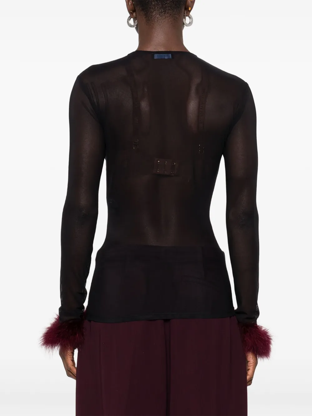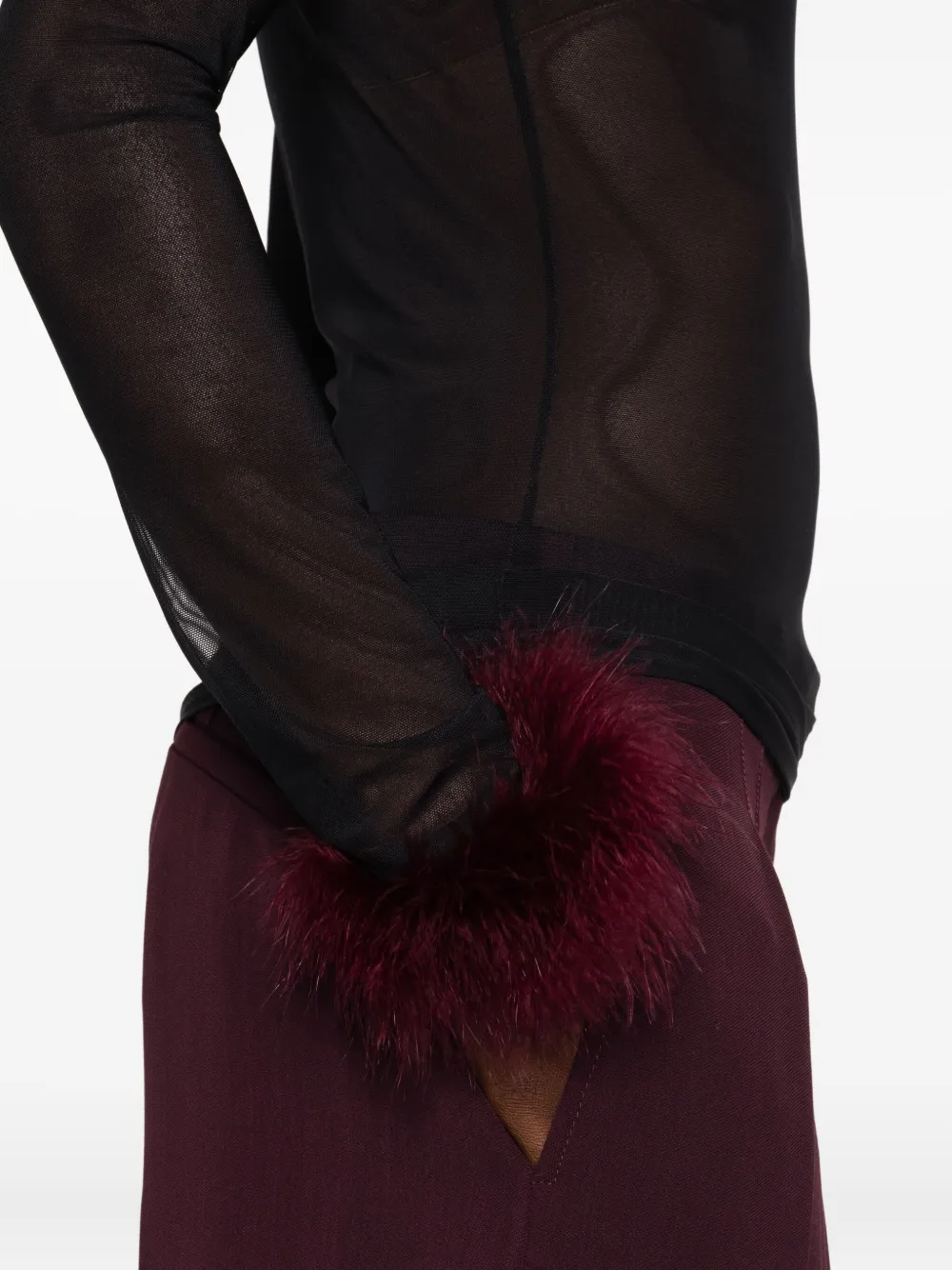 Топ с сетчатыми вставками и манжетами из перьев Mugler, черный