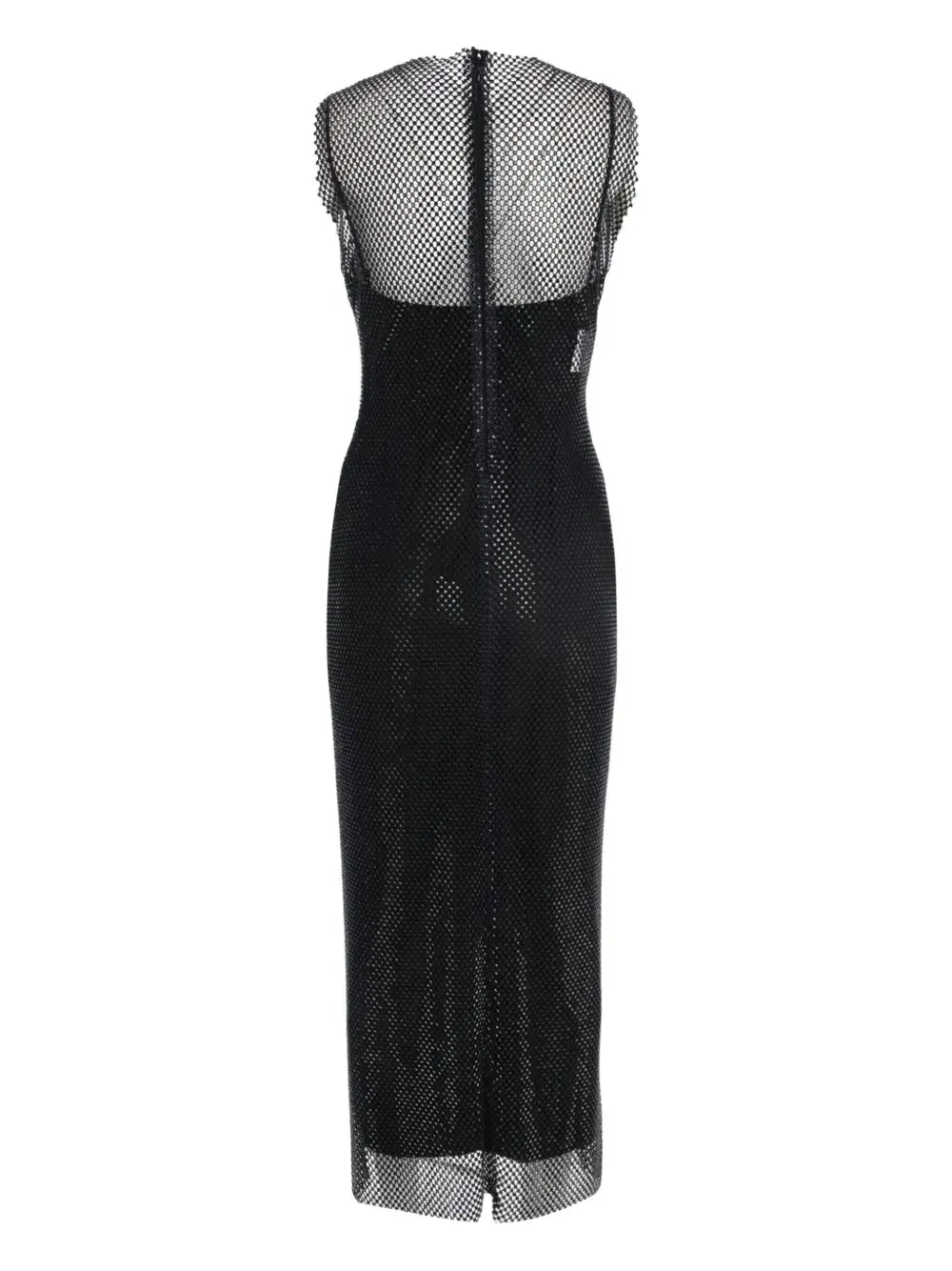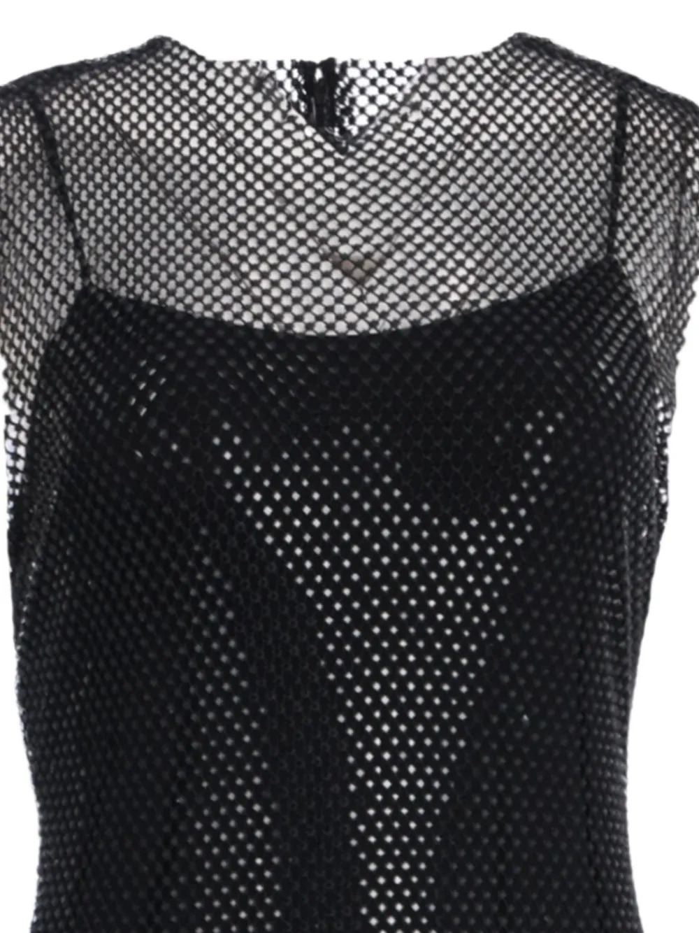 Черная сетчатая вставка, без рукавов, прямой вырез, потайная застежка-молния