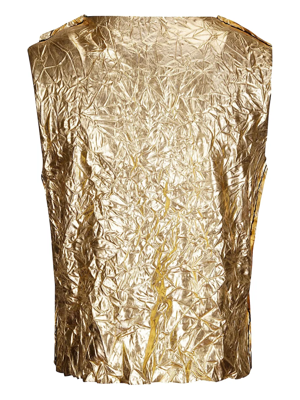 Золотистый мятый фактурный джемпер без рукавов с круглым вырезом и прямым подолом