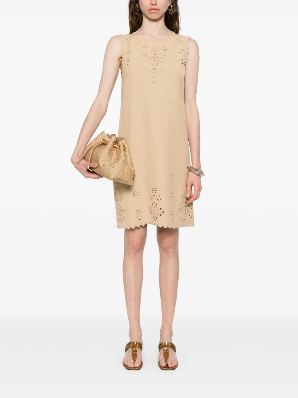 Платье миди с английской вышивкой Ermanno Scervino, нейтральный