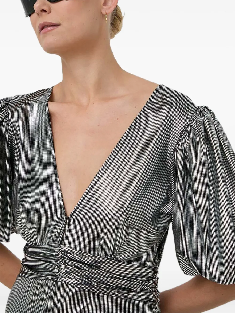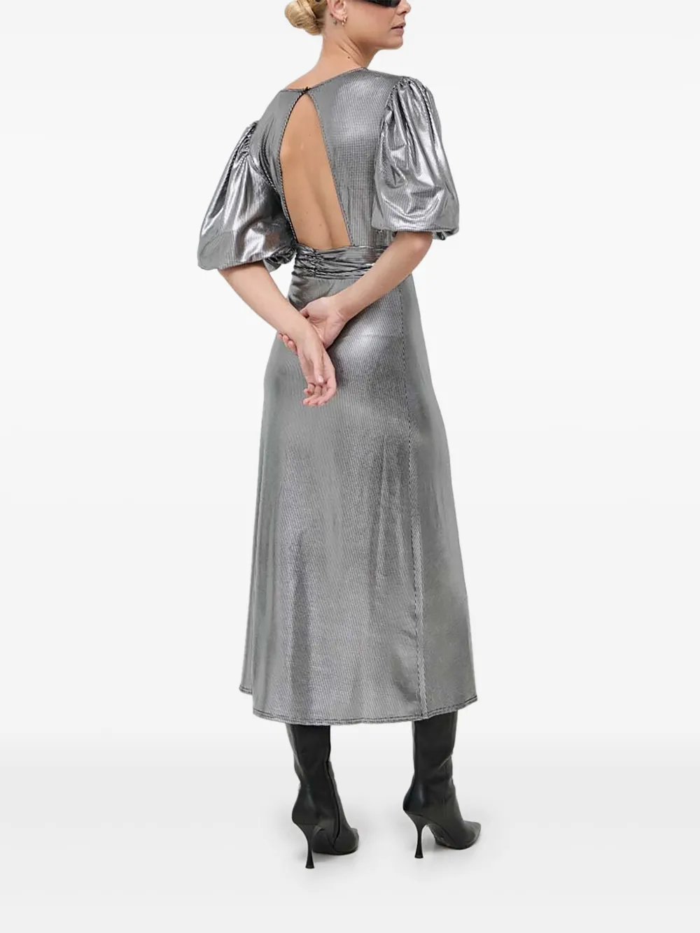 Платье миди с объемными рукавами и эффектом металлик Notes du Nord, серебряный 39 823₽