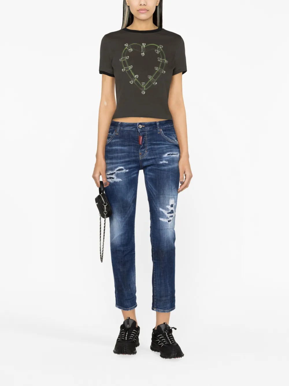Джинсы скинни средней посадки с эффектом потертости DSQUARED2, синий
