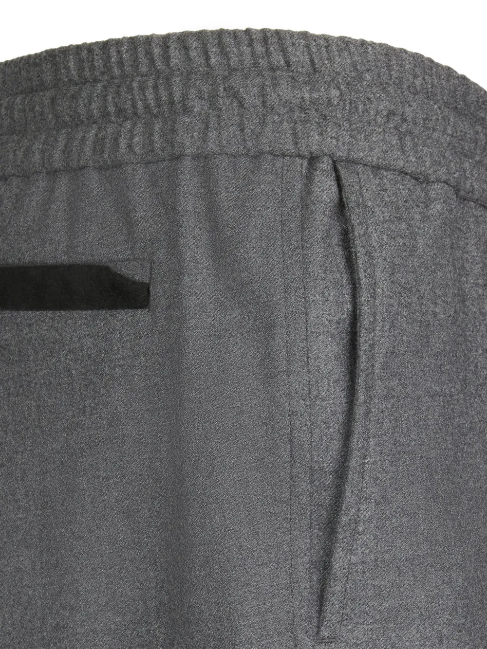 Серый эластичный пояс, затягивающийся на шнурок, прорезные карманы