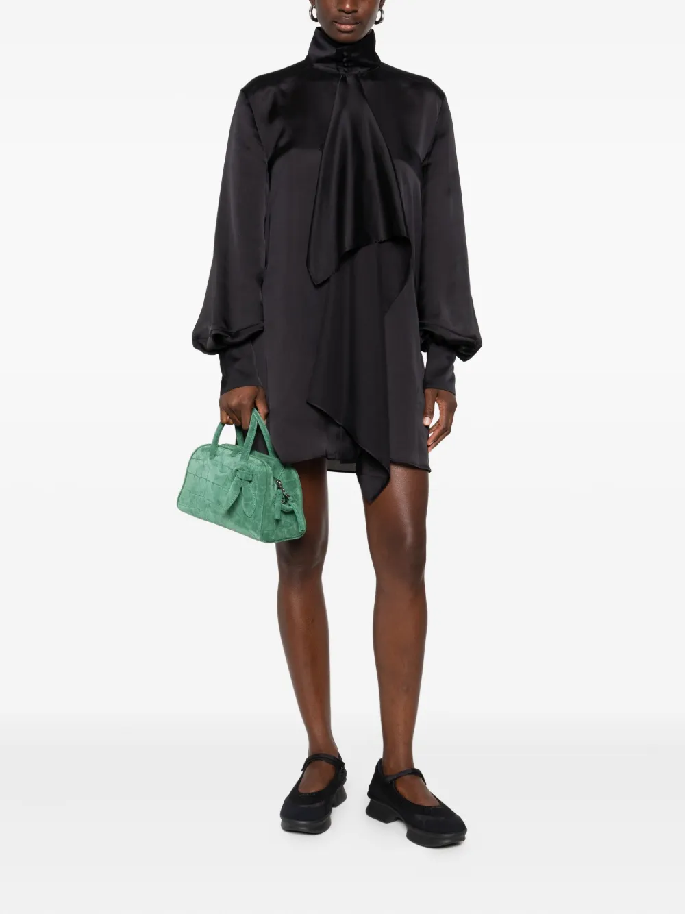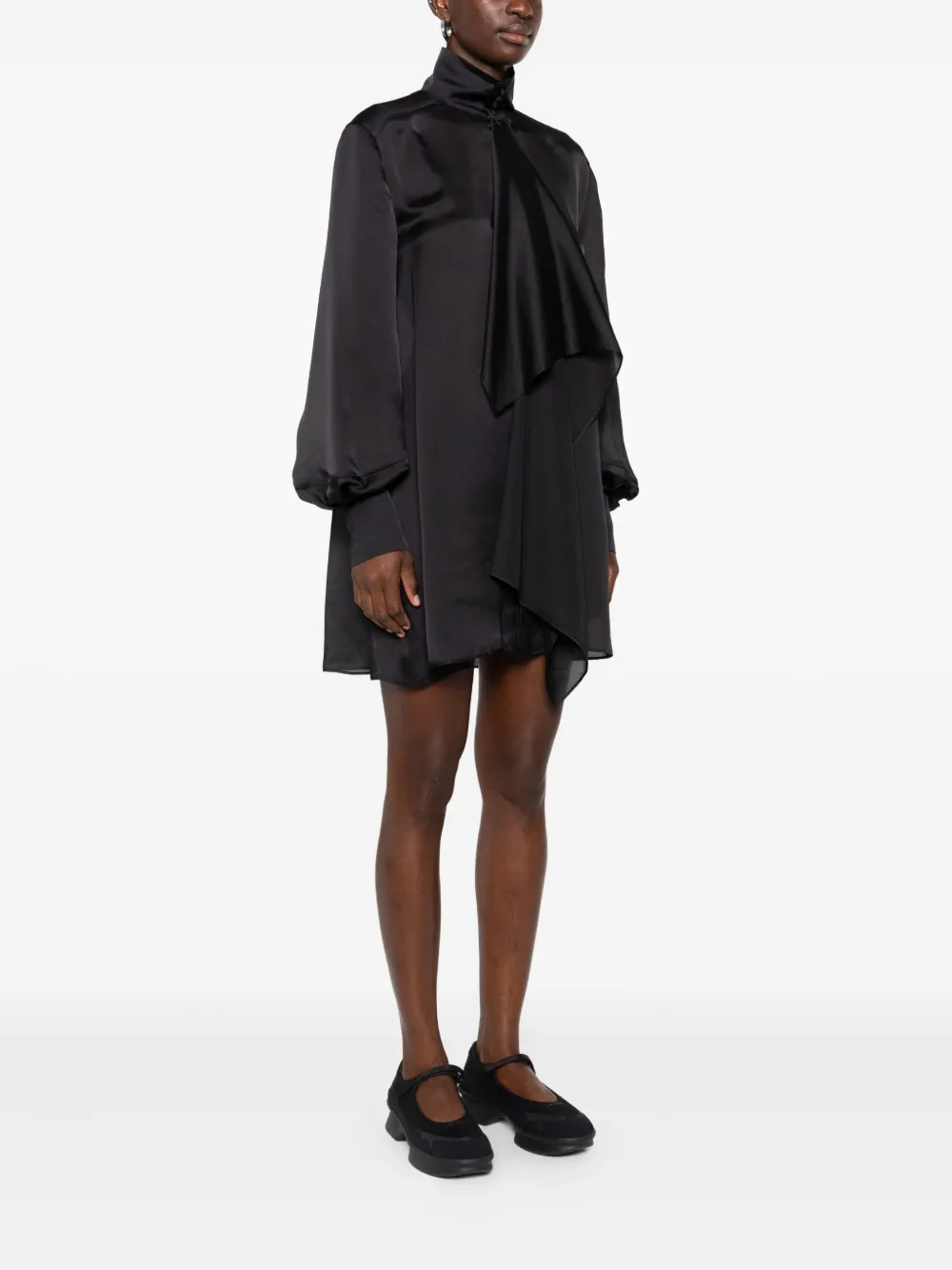Платье мини с высоким воротником и драпировкой SACAI, черный