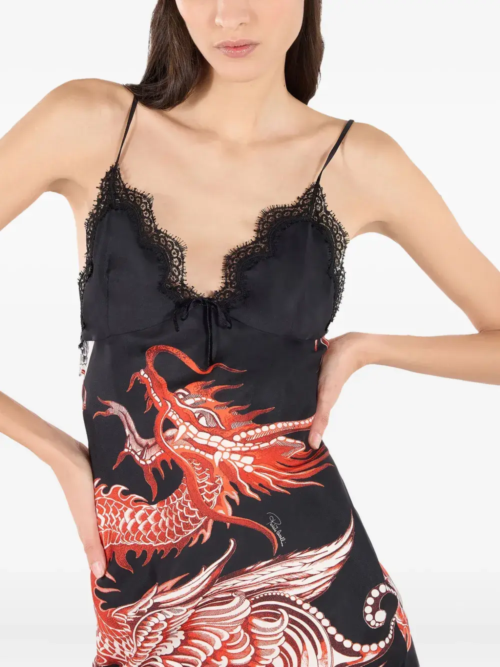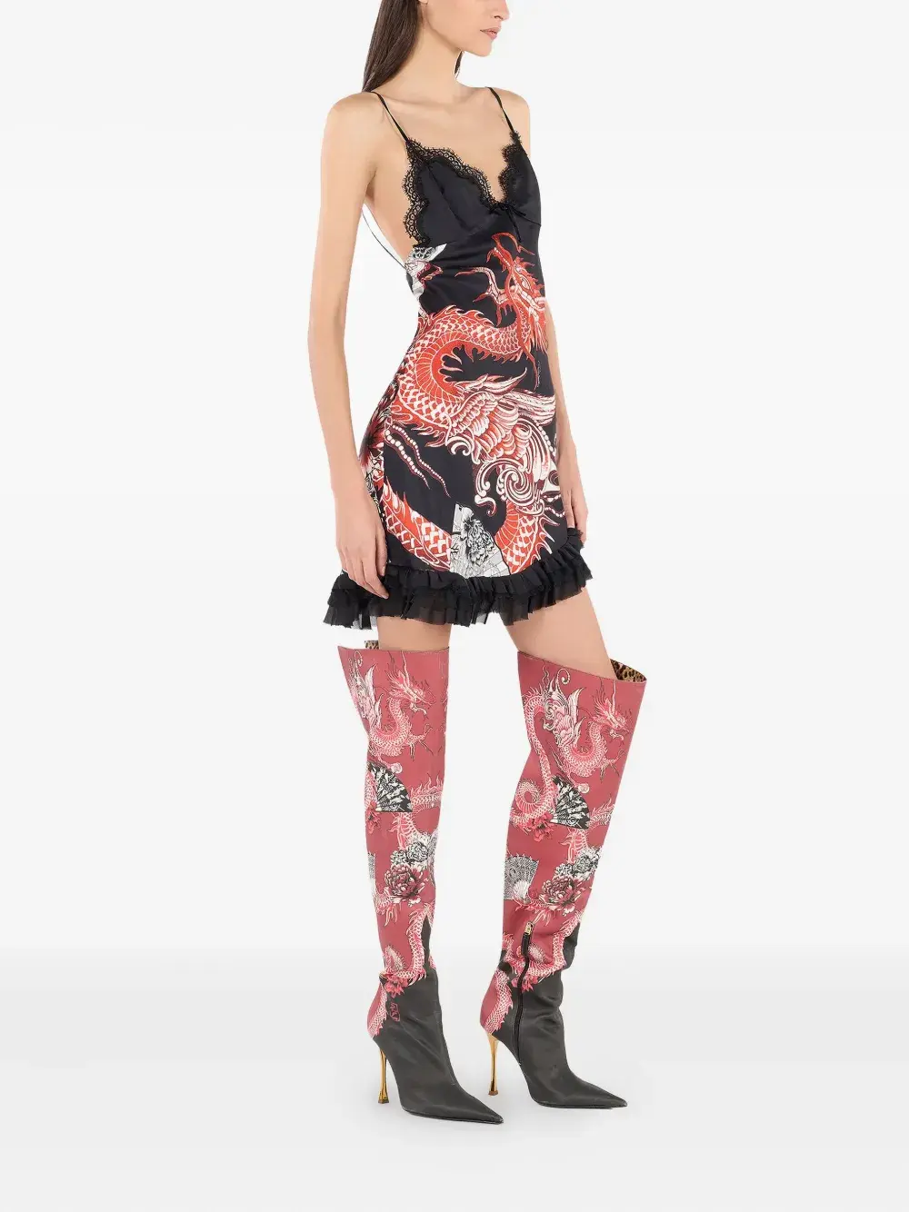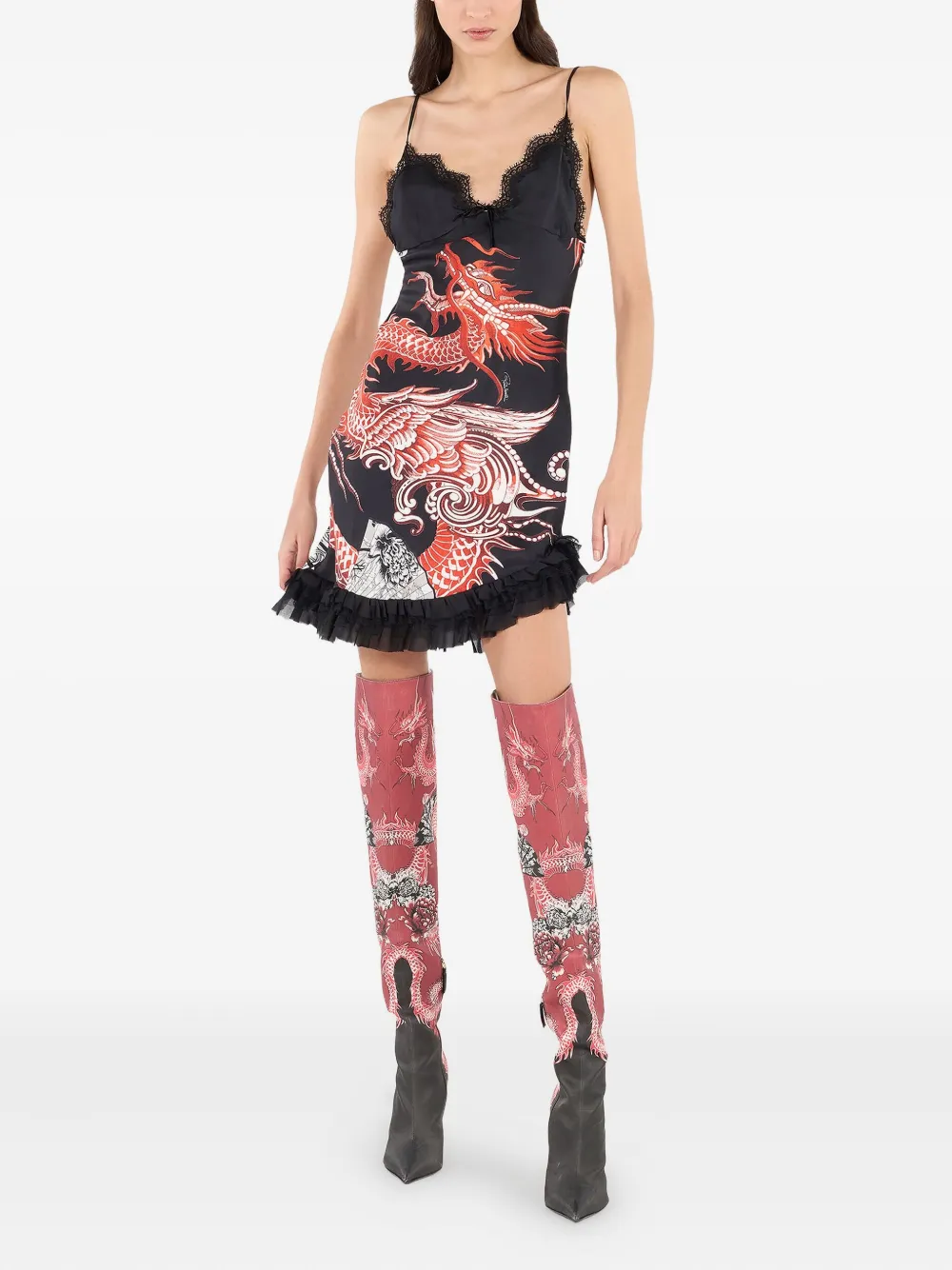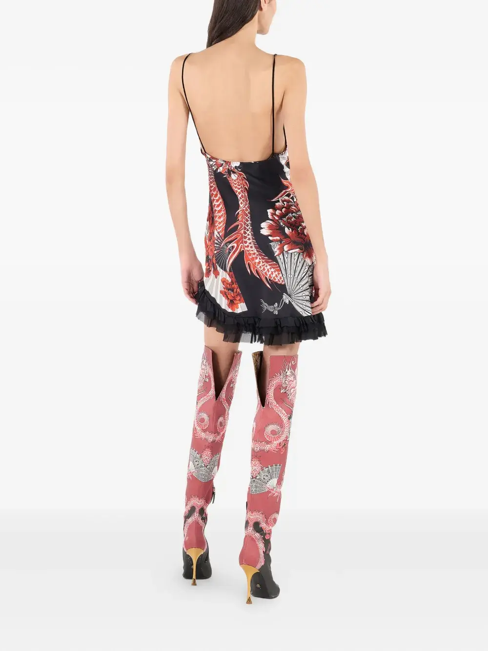 Платье мини с оборками и принтом Roberto Cavalli, черный