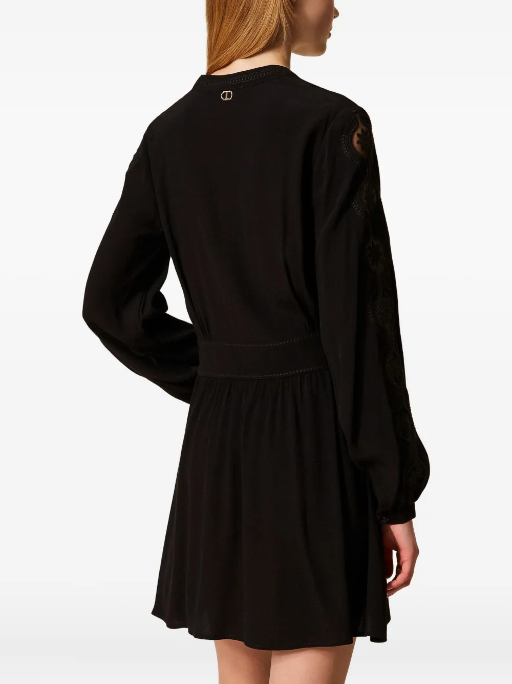 Платье мини с V-образным вырезом и вышивкой TWINSET, черный