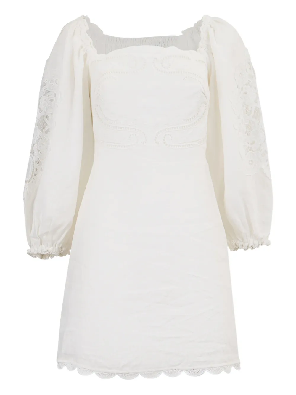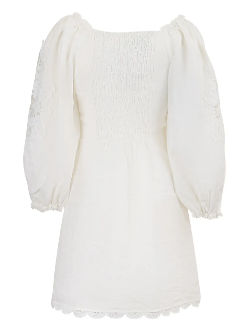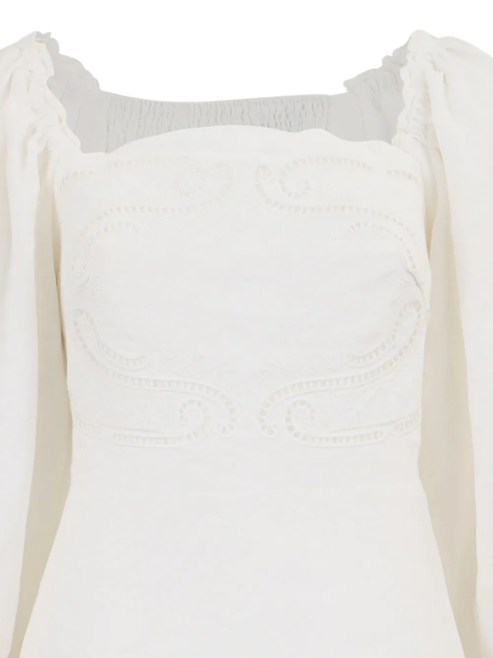 Платье мини с объемными рукавами и вышивкой FARM Rio, белый