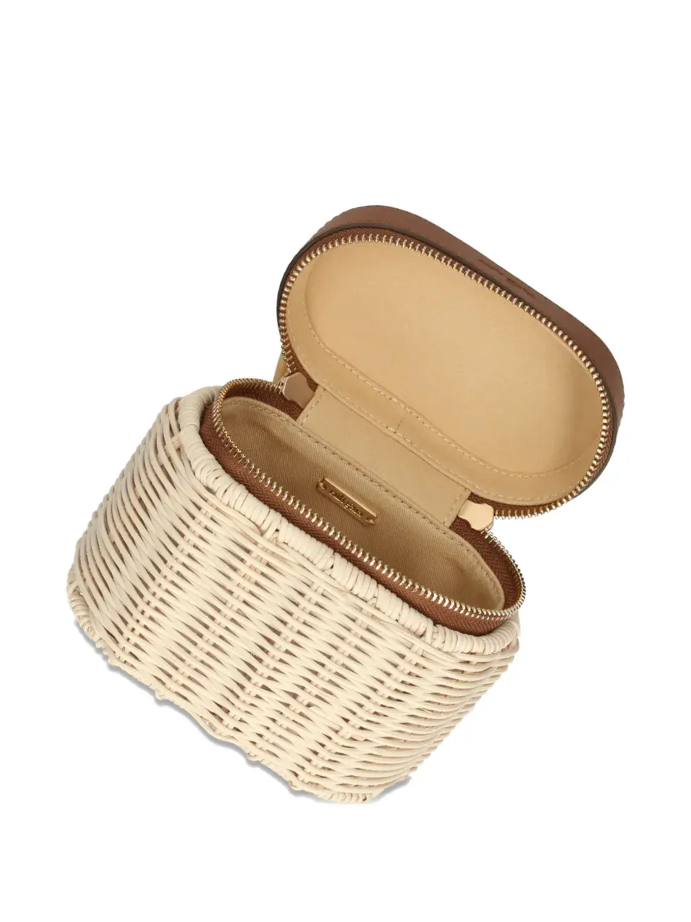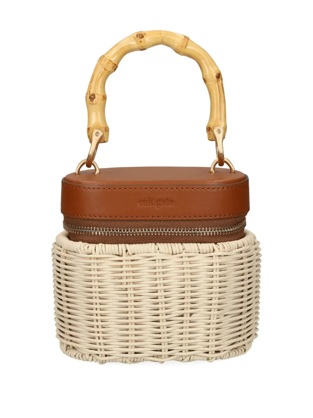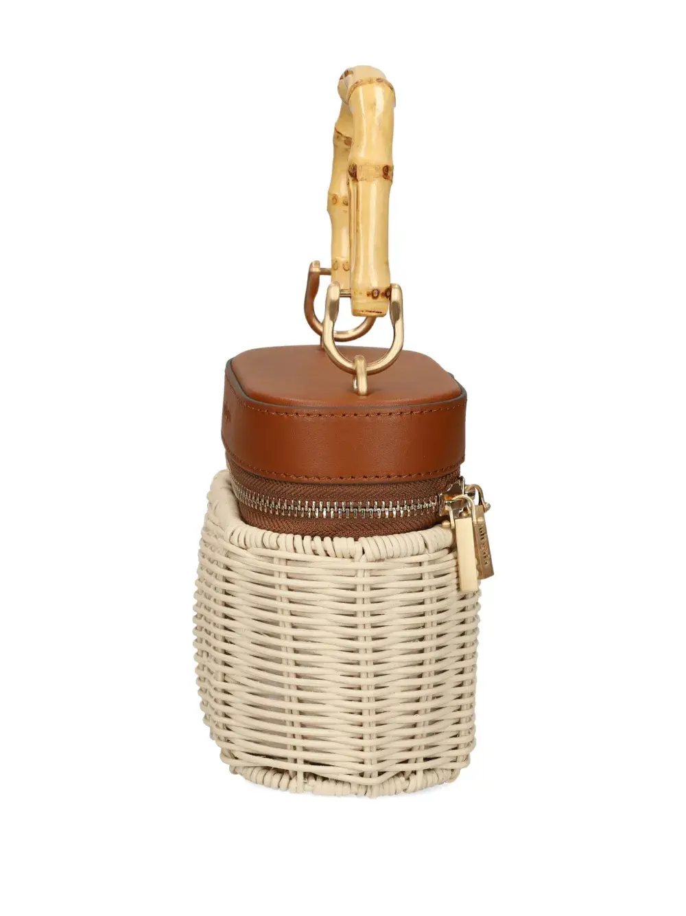 Коричневая плетеная конструкция, застежка-молния, кожаный верх, бамбуковая ручка, съемный кожаный ремешок