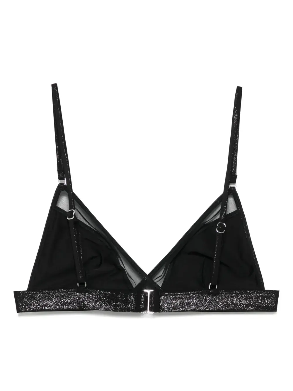 Черная застежка на крючок сзади, регулируемые бретели, треугольные чашечки. Обязательно примеряйте купальник поверх своей одежды.
