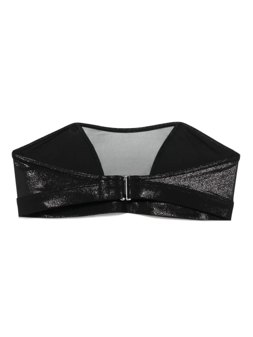 Черный купальник-бандо без бретелек с застежкой на крючок сзади. Обязательно примеряйте купальник поверх своей одежды.