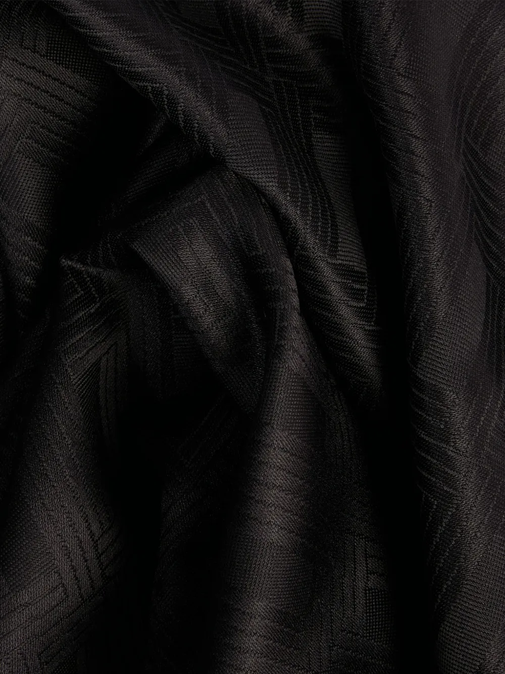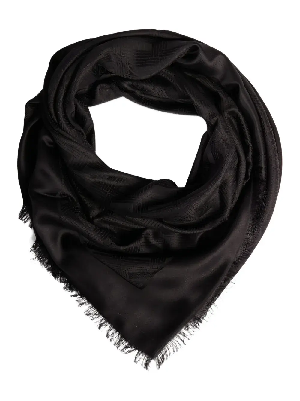 Черная шерстяно-шелковая смесь с монограммным мотивом, бахромчатые края