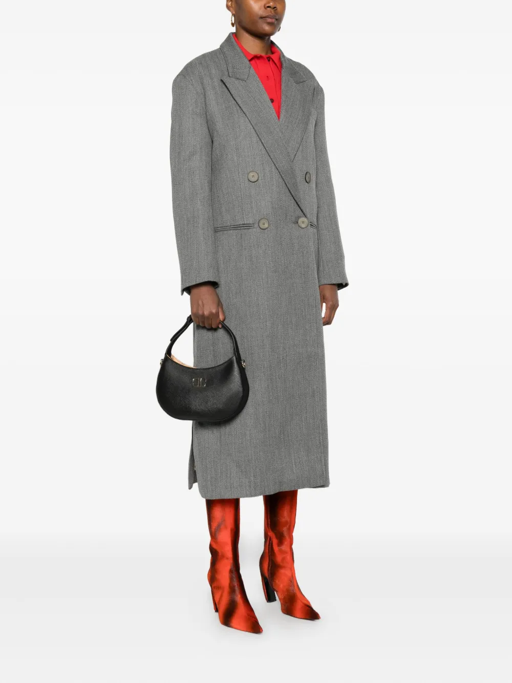 Черный полукруглый силуэт, регулируемый ремешок, застежка-молния, бляшка с логотипом
