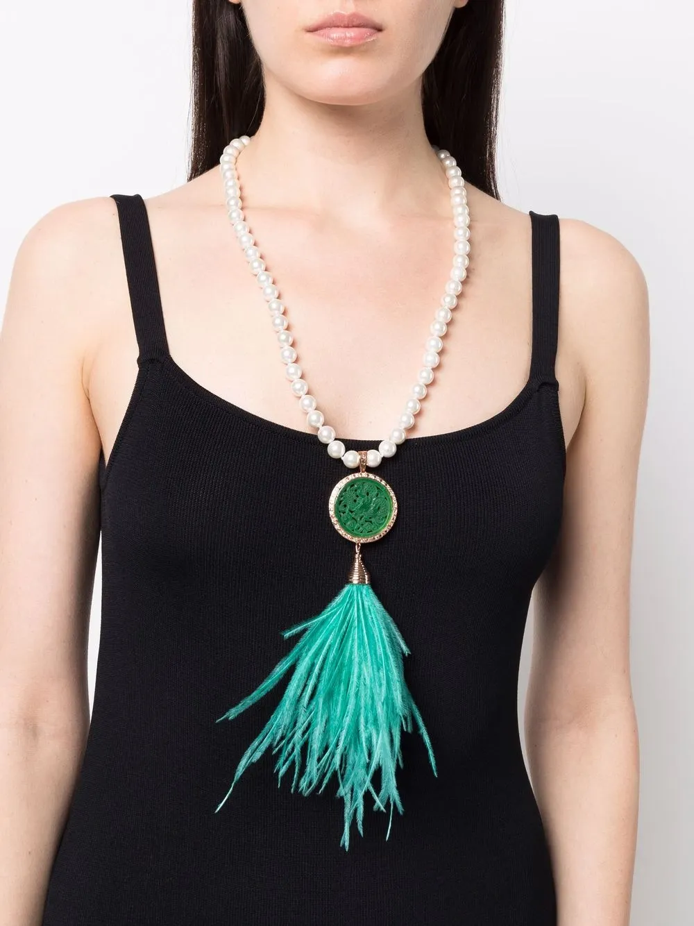 Перо, серебро 925-й пробы, 18-каратное розовое золото, Жад, Жемчуг