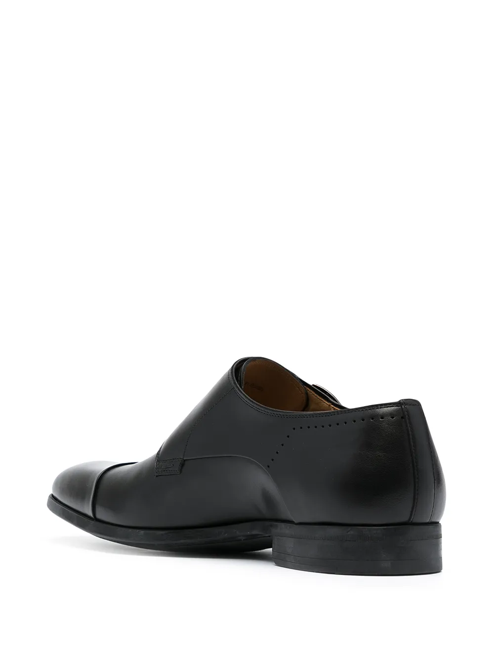 Квадратный носок, застежка с двумя пряжками, стелька с логотипом и низкий блочный каблук. Цвет: черный.