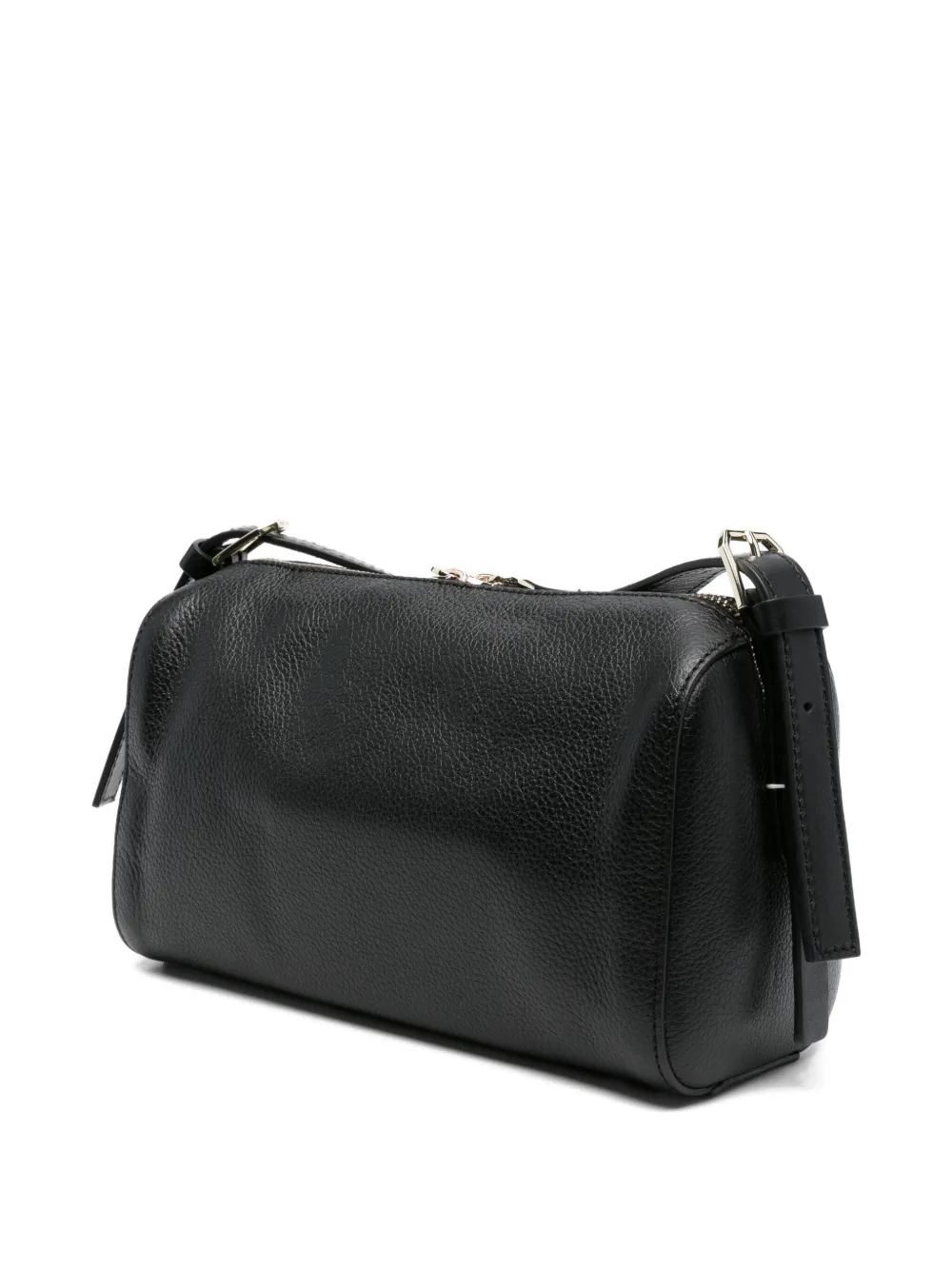 Черная кожаная застежка-молния, регулируемый плечевой ремень, надпись логотипа цилиндрической формы