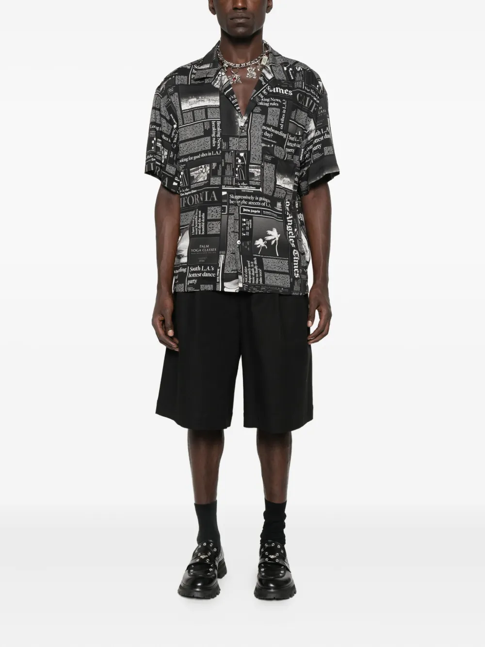 Рубашка с газетным принтом PALM ANGELS, черный