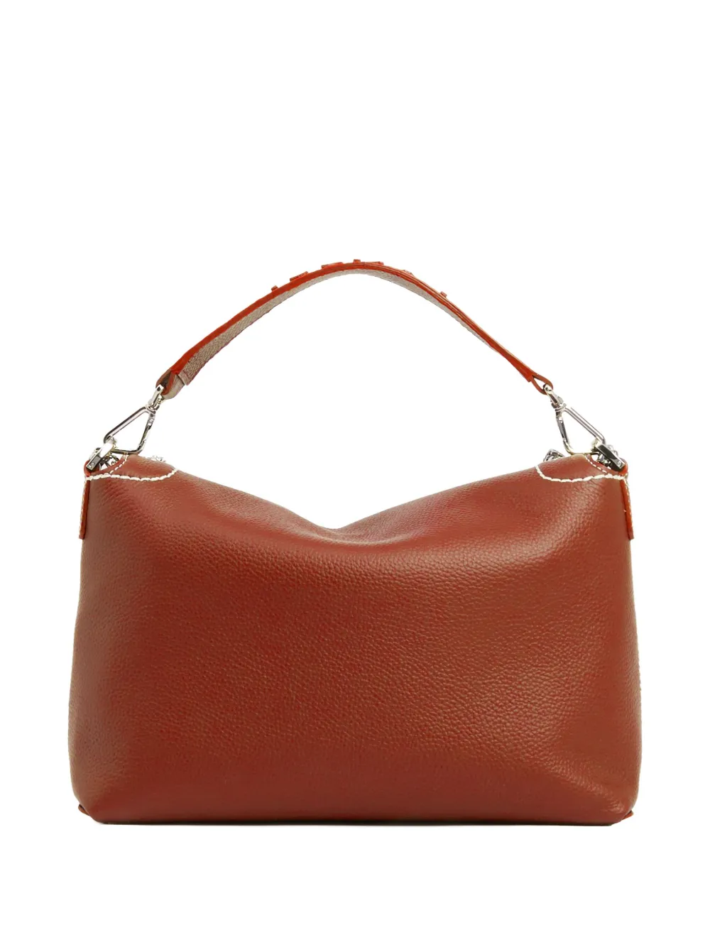 Коричневый кожаный ремешок-цепочка с верхней ручкой, контрастной строчкой и тисненым логотипом