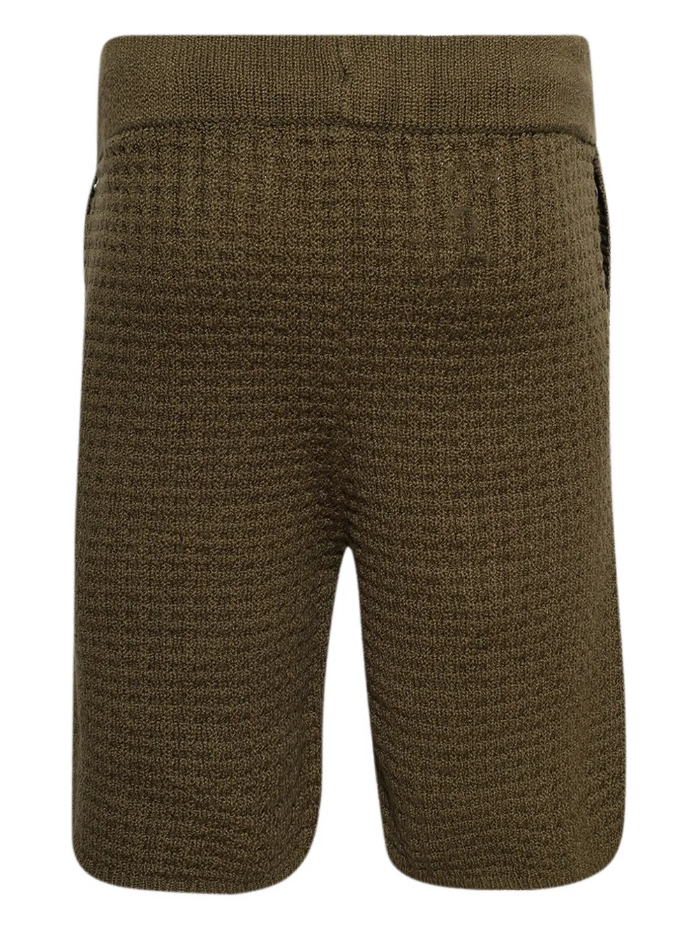 Оливково-зеленая трикотажная текстура, затягивающийся шнурок, резинка на поясе, прямой подол