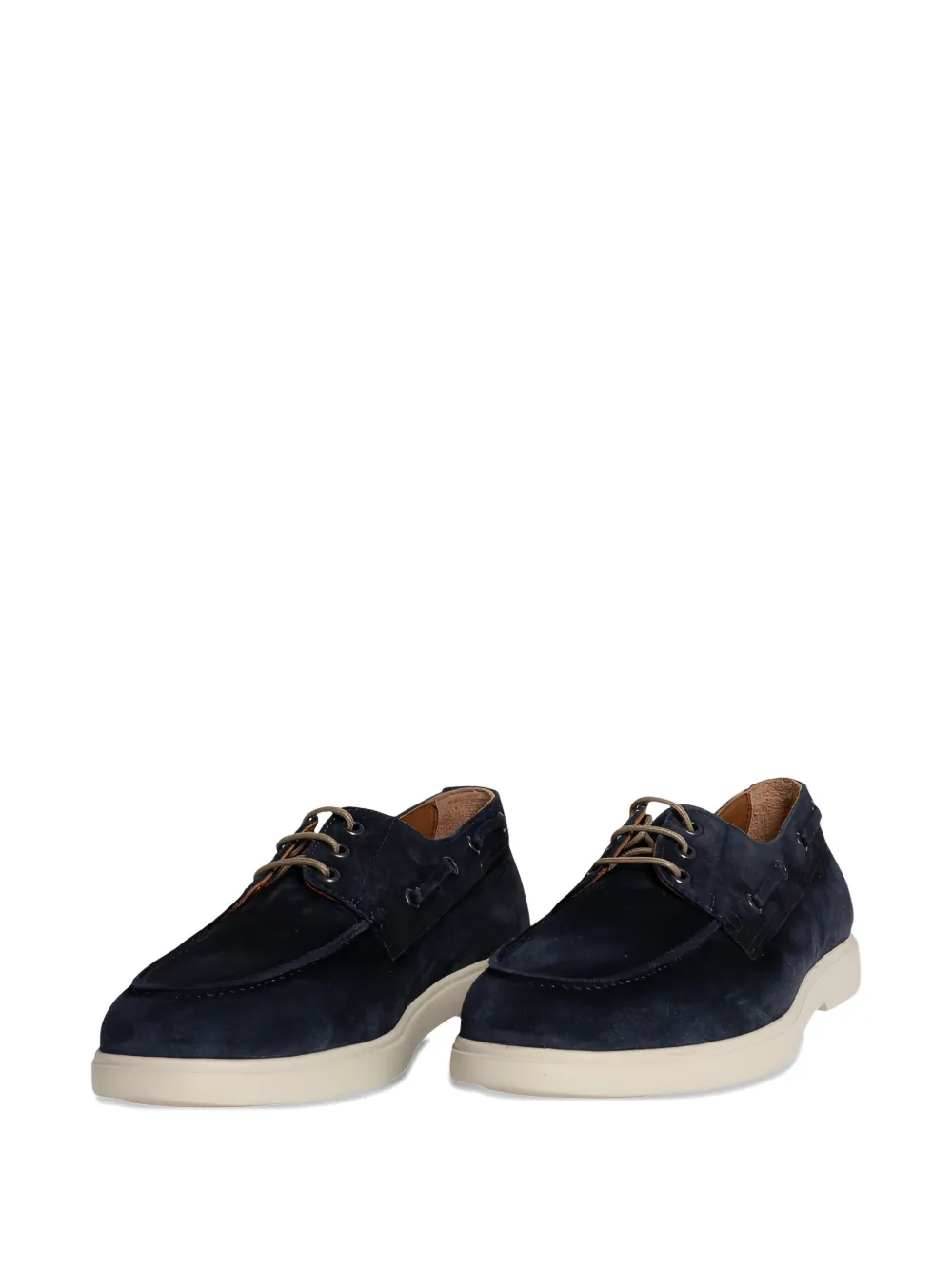 Синий нубук, шнуровка, резиновая подошва, тональная строчка