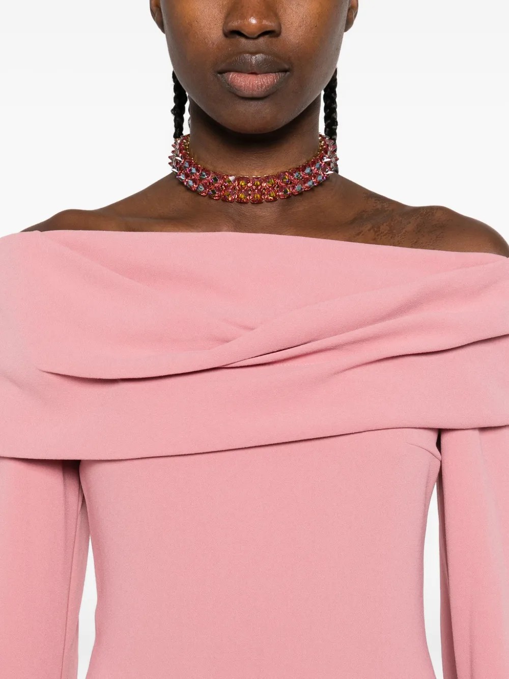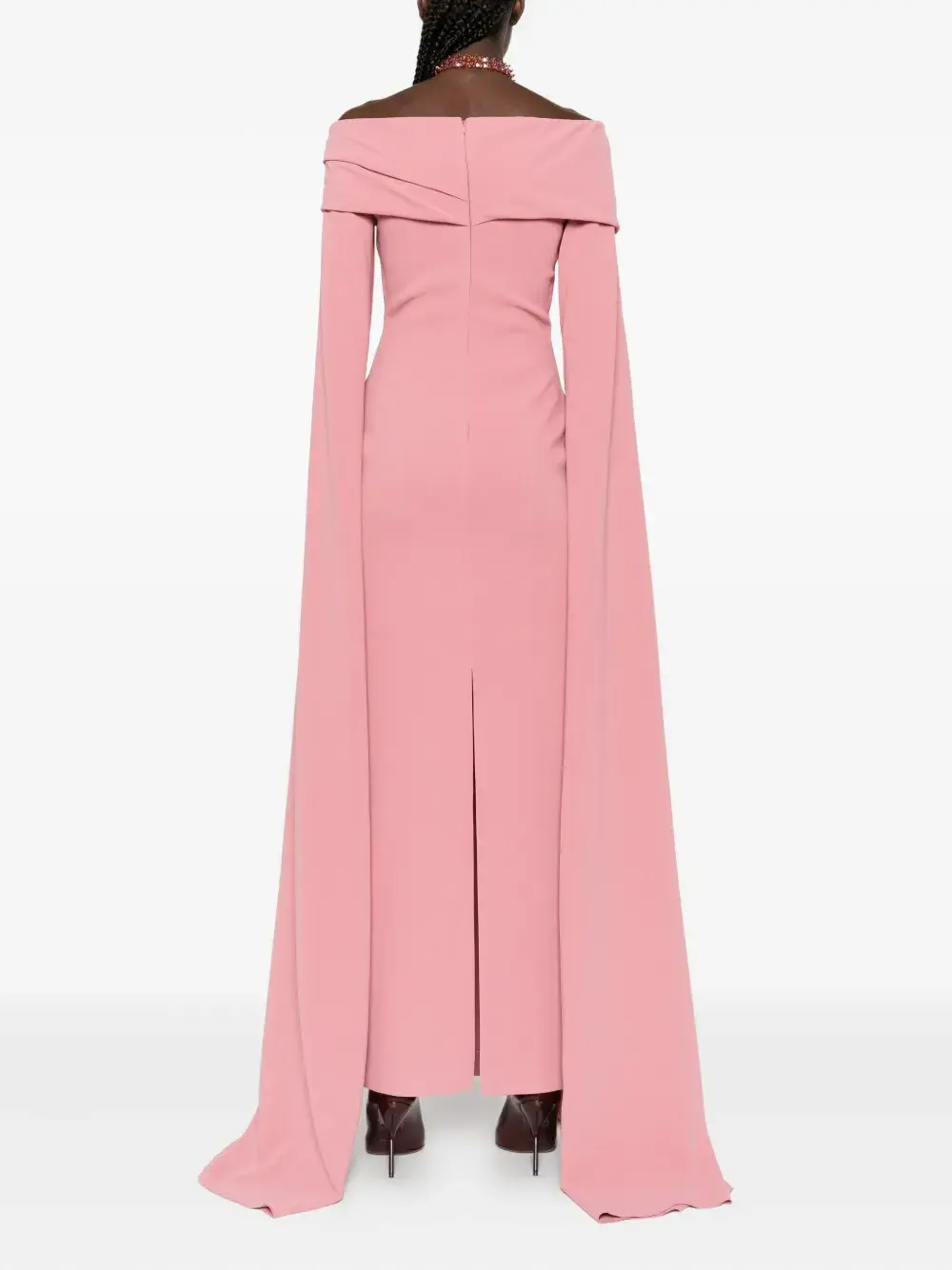 Розовый вырез с открытыми плечами, длина макси, прямой подол