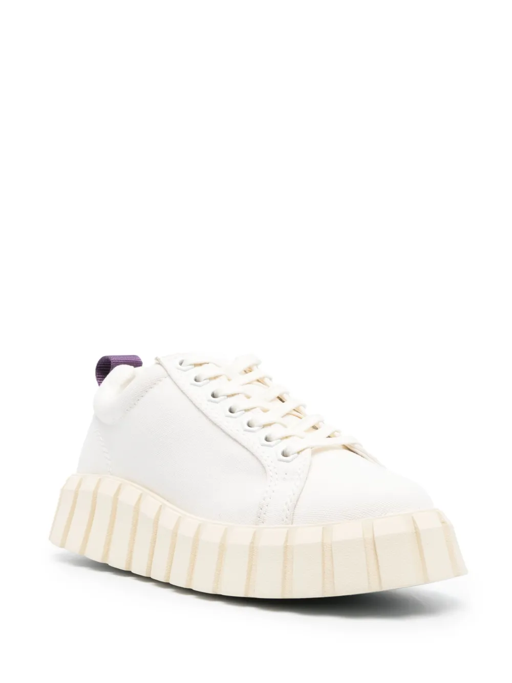 Белый, строчка в тон, петля для подтягивания сзади, закругленный носок, шнуровка спереди, стелька с логотипом и массивная резиновая подошва. Это унисекс-модель. Обратите внимание, что для нее используется мужская размерная сетка.