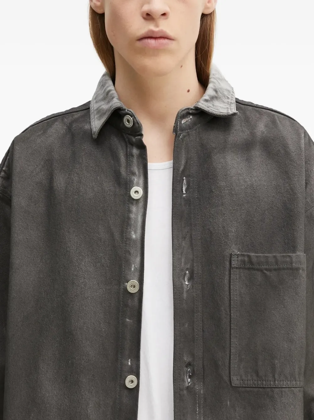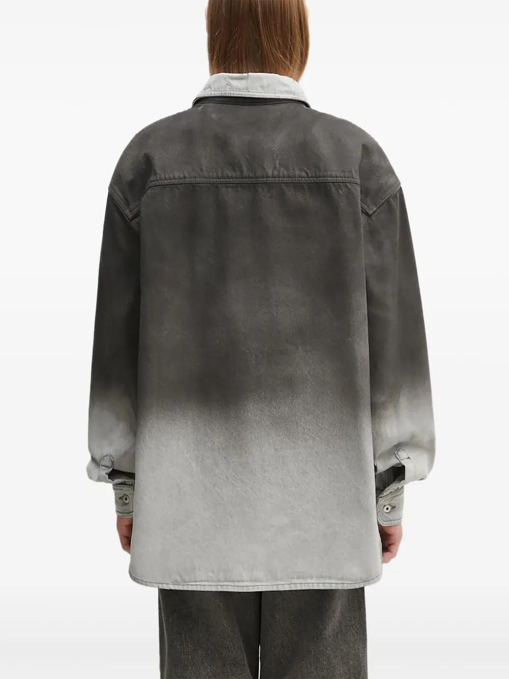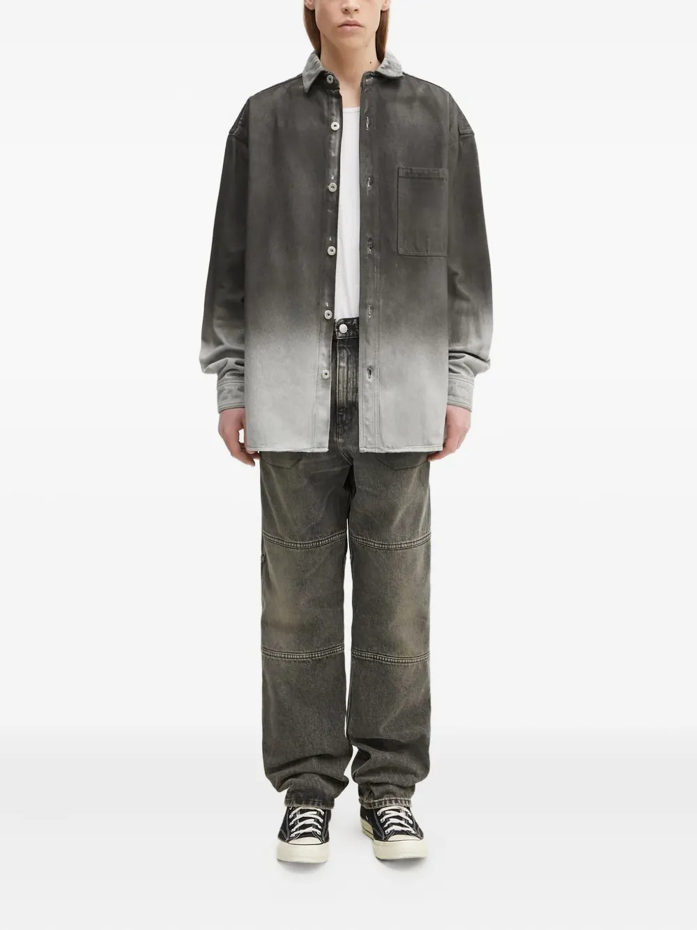 Серый омбре-эффект, застежка на пуговицы, накладной карман, длинные рукава, воротник-поло
