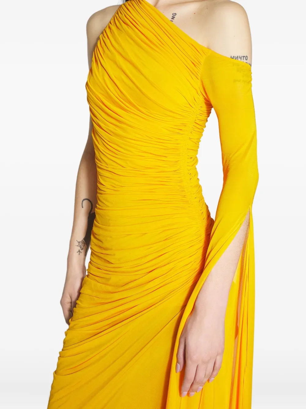 Платье макси с драпировкой на одно плечо Mugler, желтый