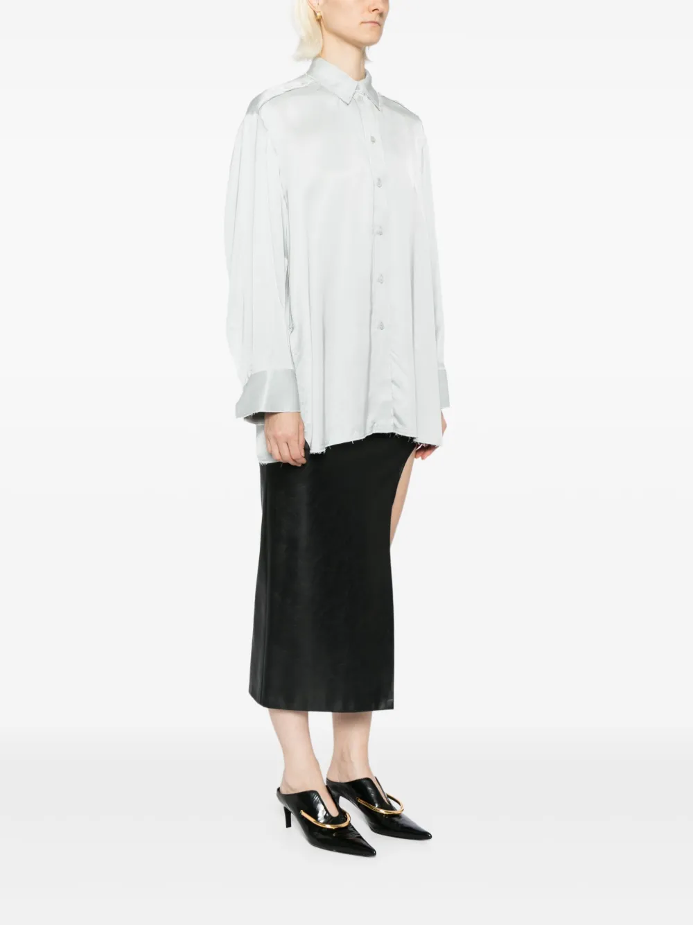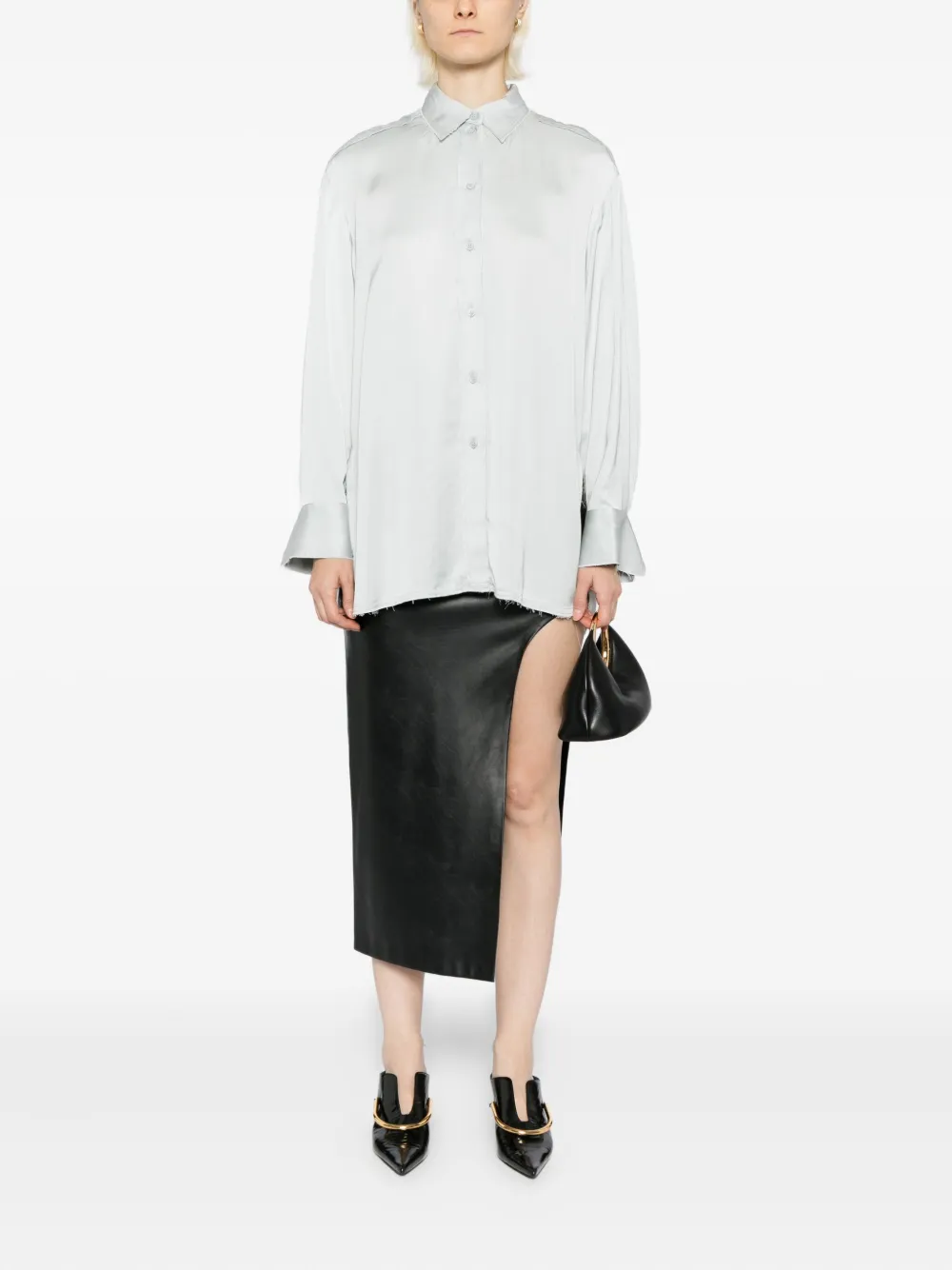 Застежка на пуговицы светло-голубого цвета спереди, необработанный край