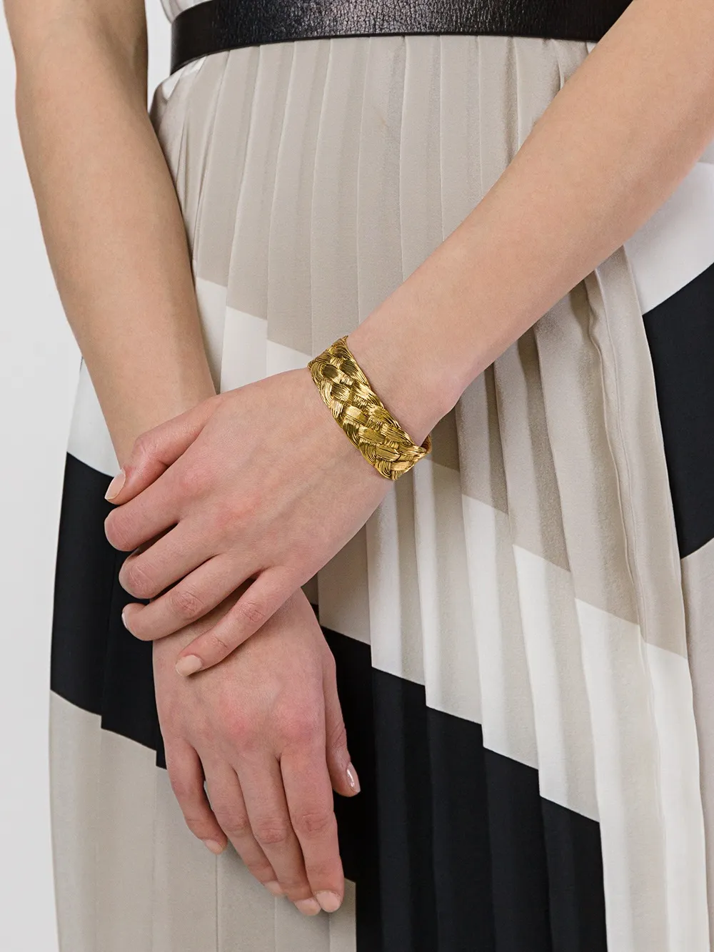 Позолоченный латунный открытый браслет 'Braided' от Aurelie Bidermann. .плетеный дизайн. Ширина 2см. Длина окружности 16см. (регулируемый размер)