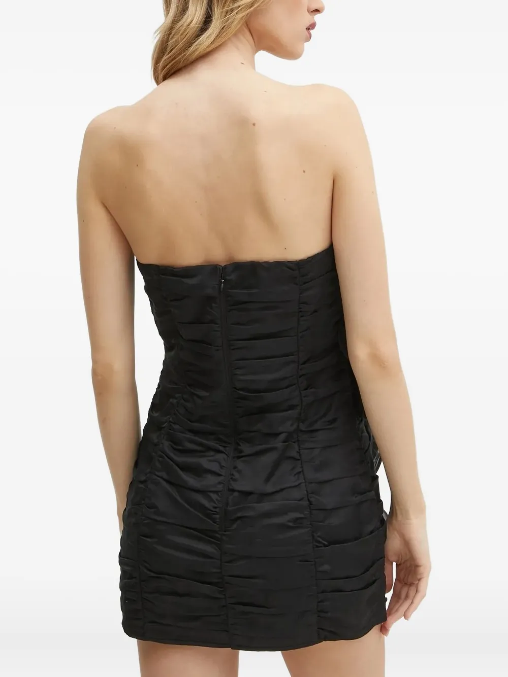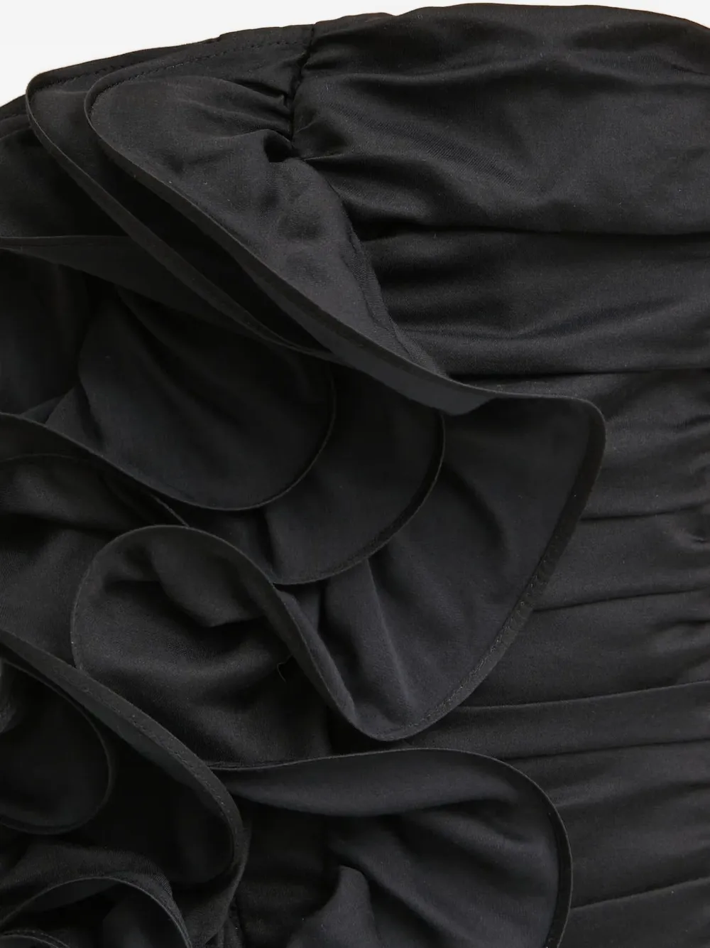Черный присборенный лиф без бретелек, асимметричные оборки, длина мини, приталенный силуэт