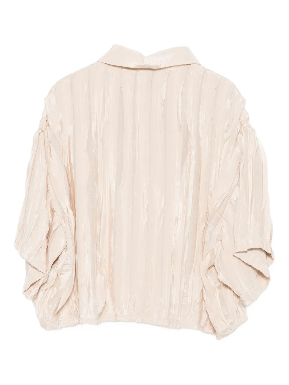 Бежевый оригами-плиссировка, короткие рукава, застежка на пуговицы, воротник-стойка