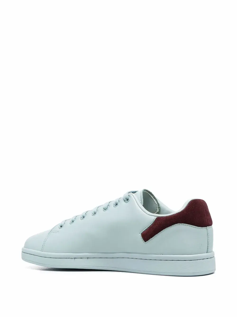 Задник с логотипом, шнуровка спереди, закругленный носок и плоская резиновая подошва. Цвет: синий.