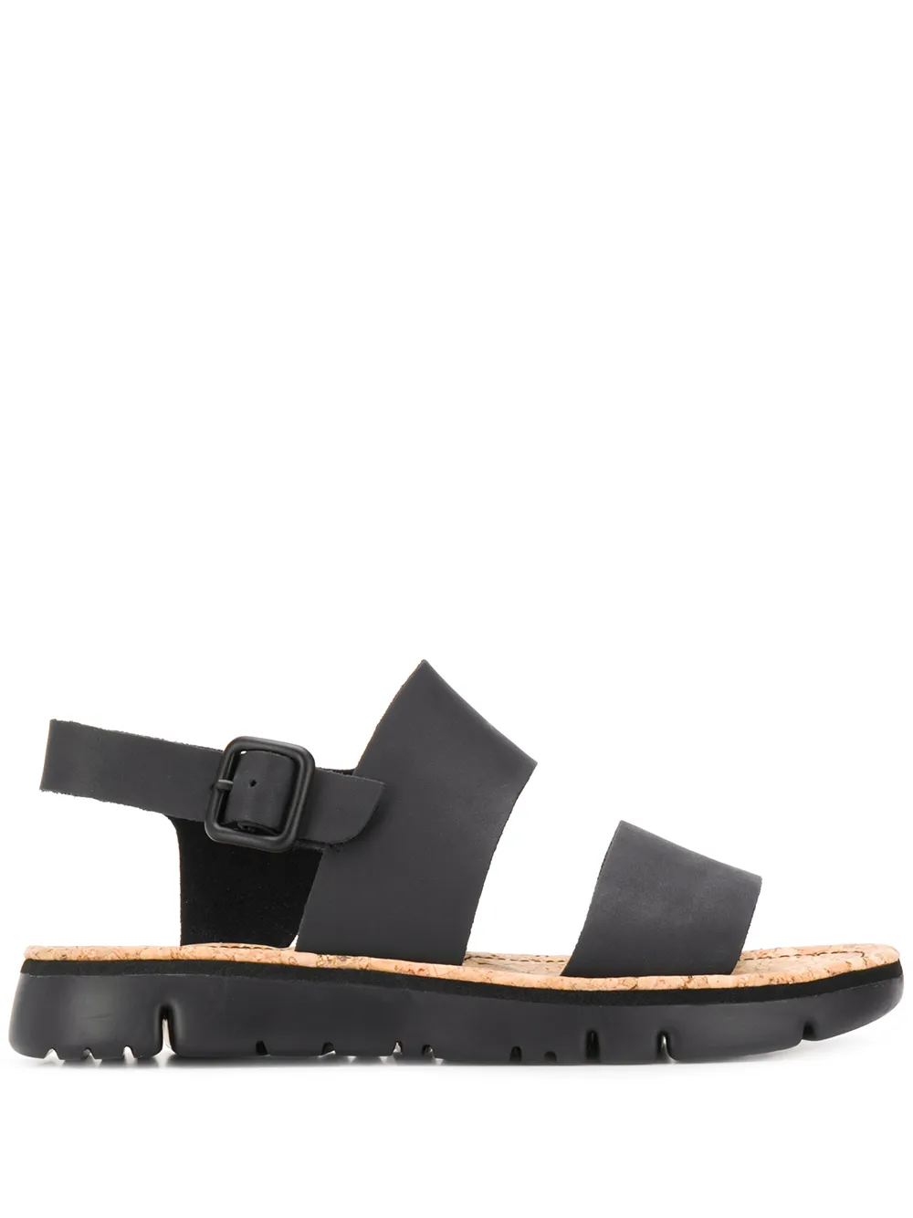 Подробнее о товаре: Сандалии Oruga с открытым носком от Camper. Дизайн с ремешками, плоская резиновая подошва, застежка на пряжке, открытый носок и пробковая стелька. Цвет: черный. POSITIVELY CONSCIOUS: Производитель кожи, из которой сделана эта модель, прошел аудит международного сообщества кожевников (Leather Working Group) и получил золотую медаль, поэтому вы можете не сомневаться, что делаете ответственный выбор