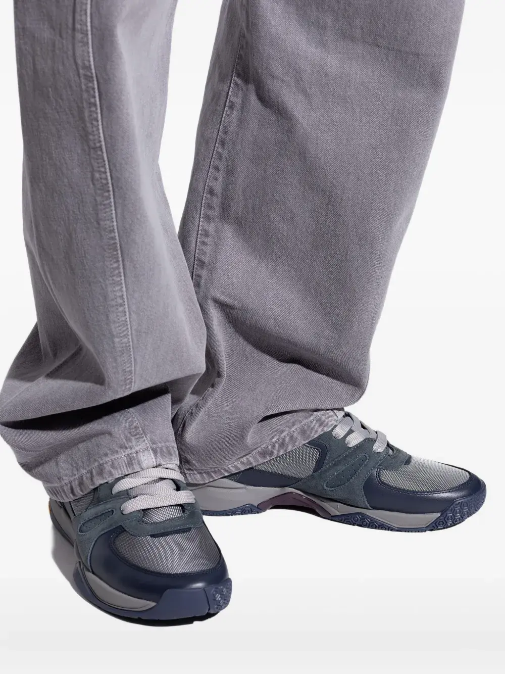 Темно-синие кожаные панели, шнуровка, плоская резиновая подошва, подошва Vibram