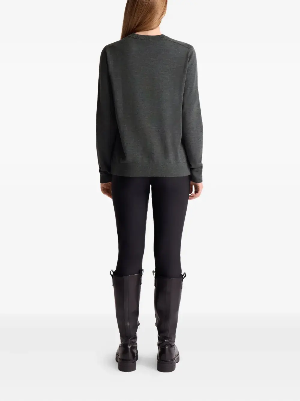 Серая шерстяно-шелковая смесь с круглым вырезом и логотипом на бирке