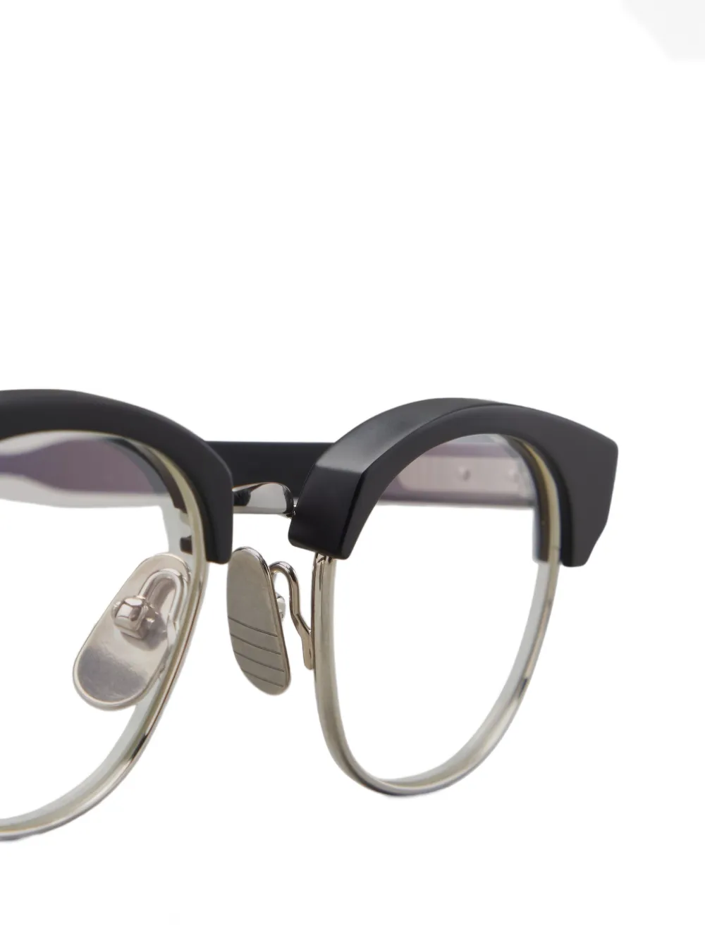 Черная овальная оправа с верхним слоем из ацетата и нижним носоупором из титана. Все очки FARFETCH продаются без диоптрий. Очки поставляются с защитным футляром.