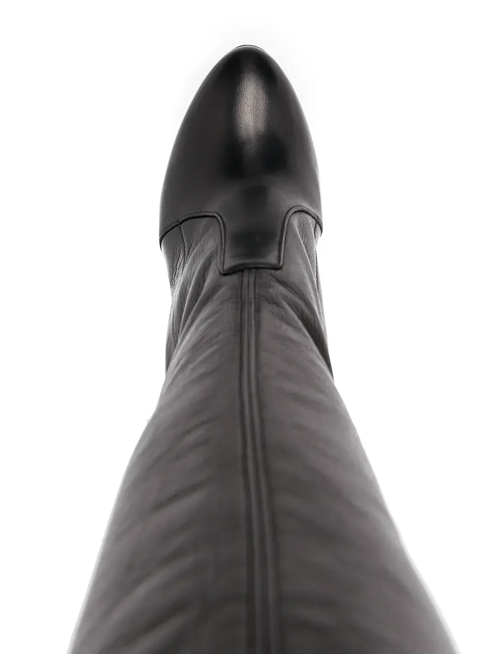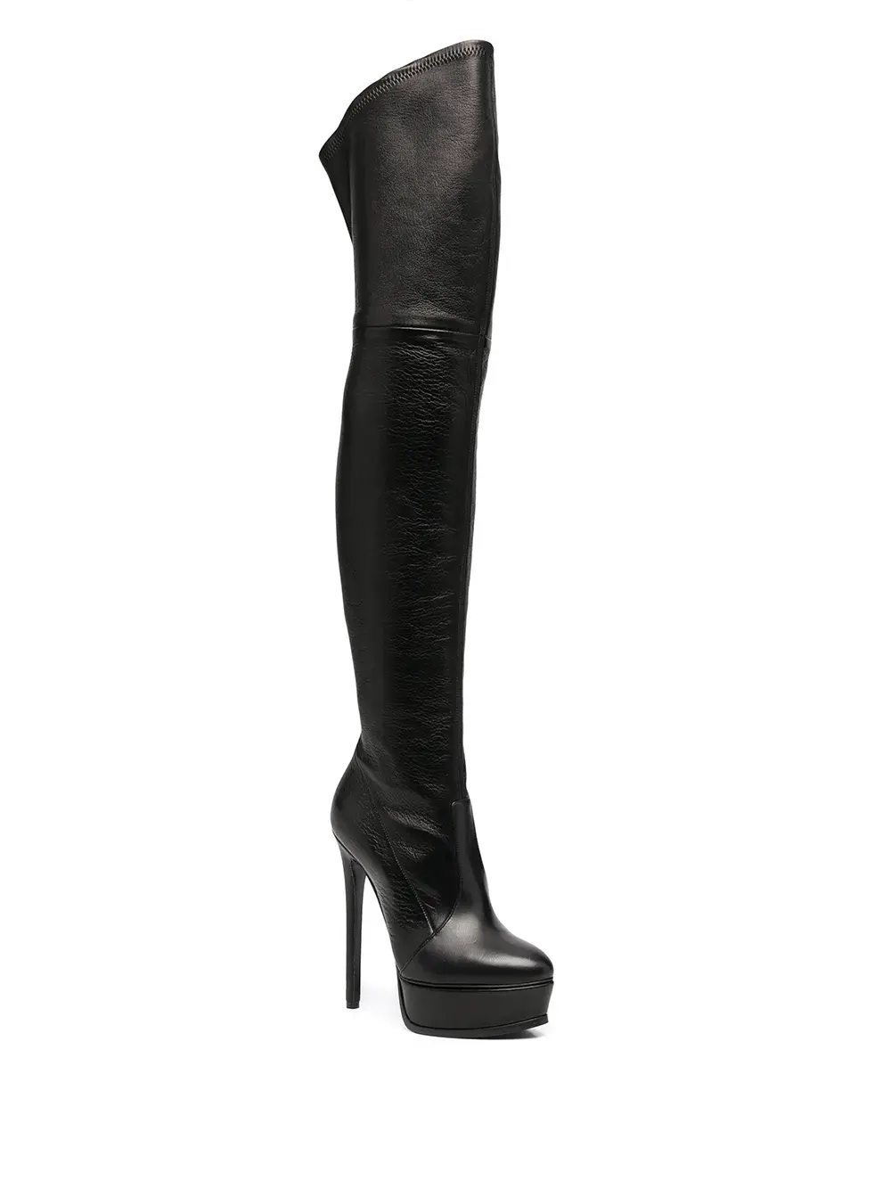 Миндалевидный носок, подошва на платформе, высокий каблук и длина до бедер. Цвет: черный.