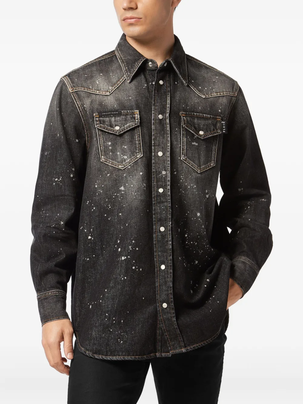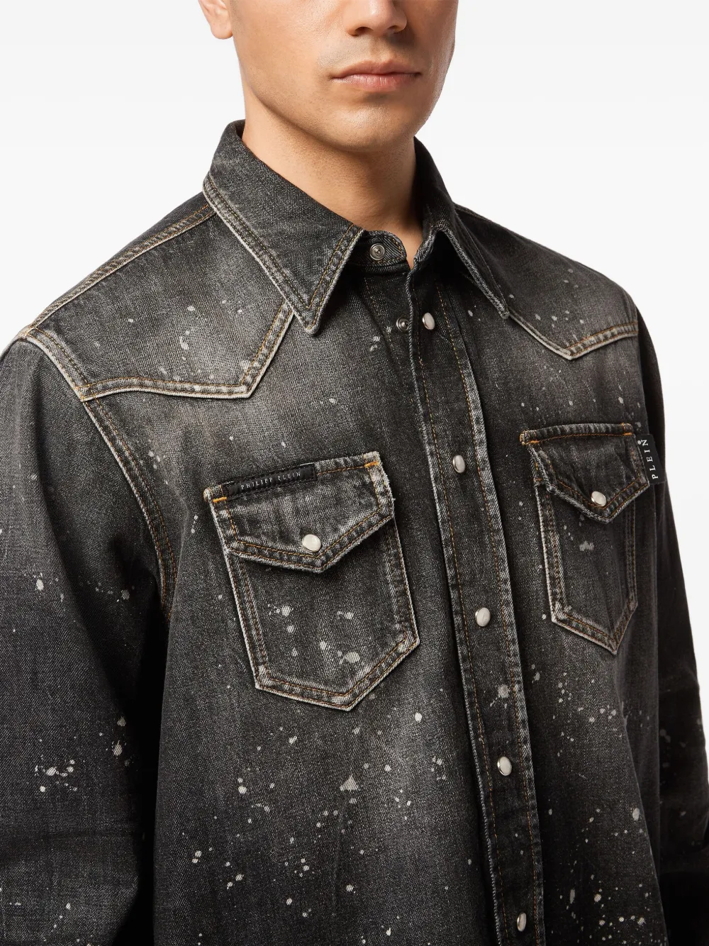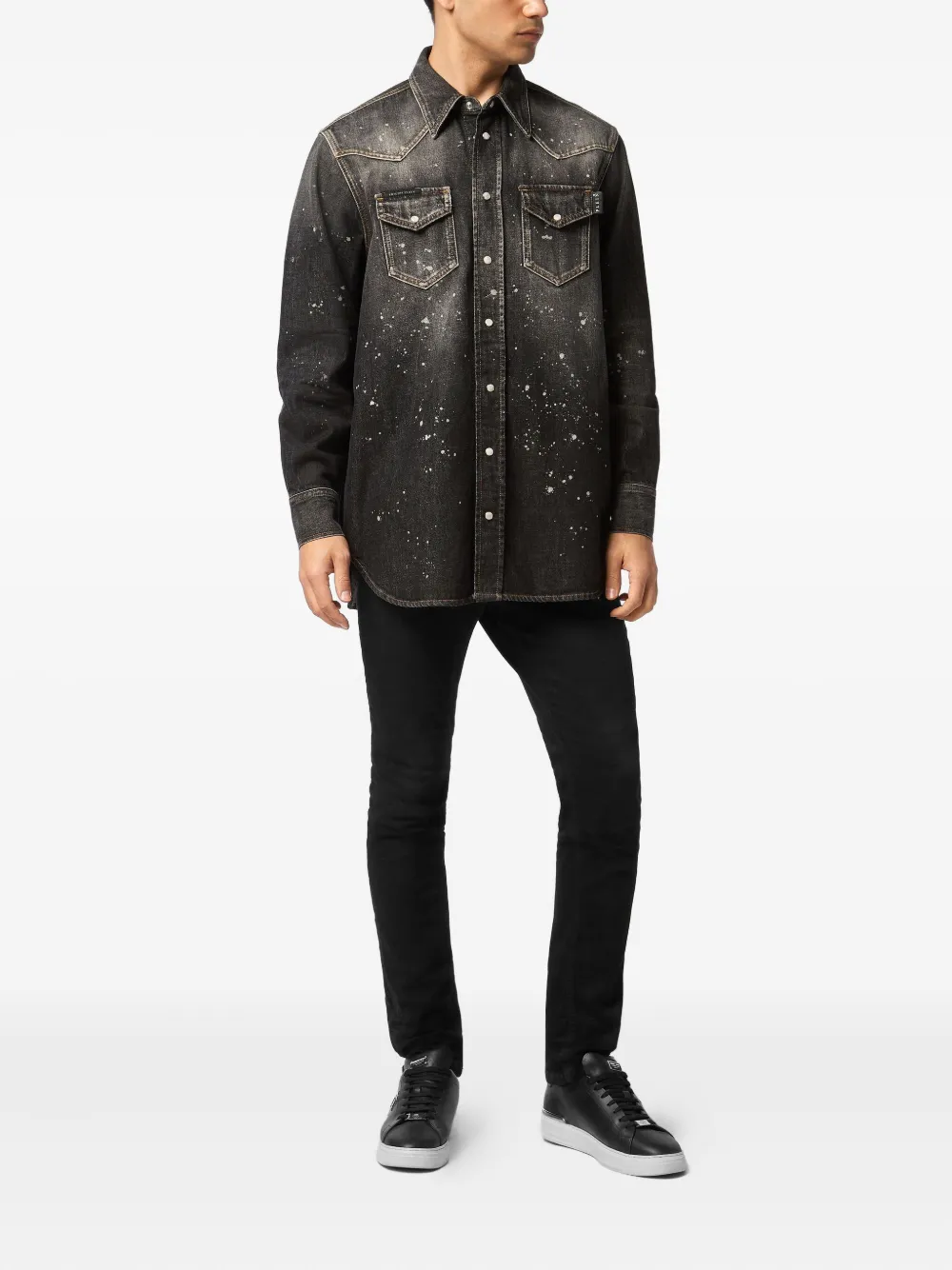 Джинсовая рубашка оверсайз Philipp Plein, черный