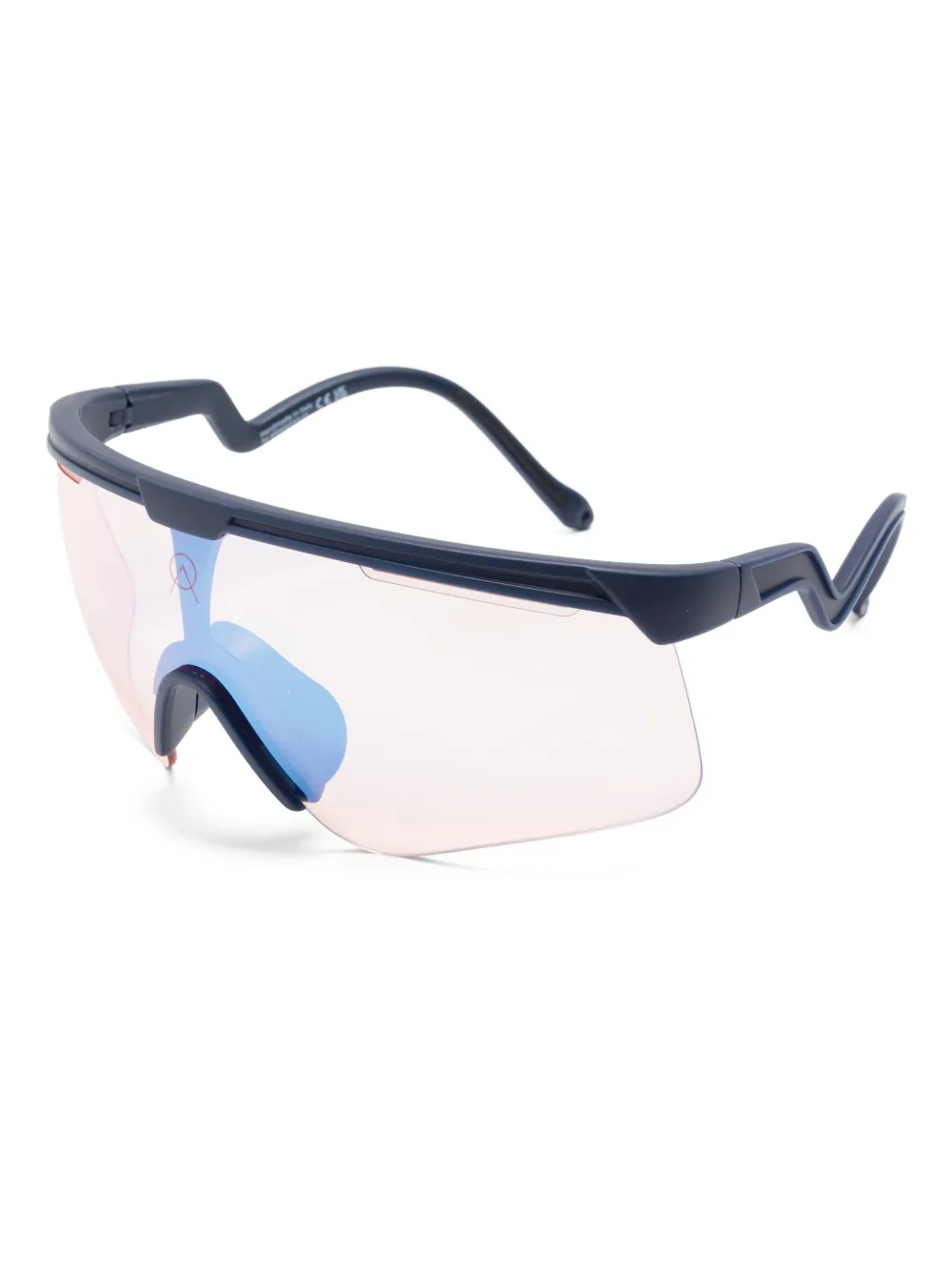 Синяя увеличенная оправа, тонированные линзы, носоупоры, изогнутые дужки. Очки поставляются с защитным футляром.
