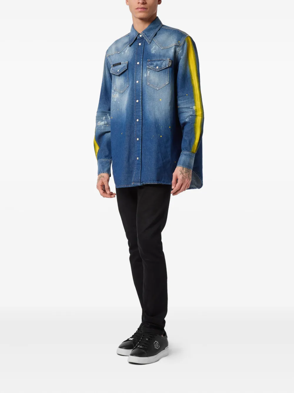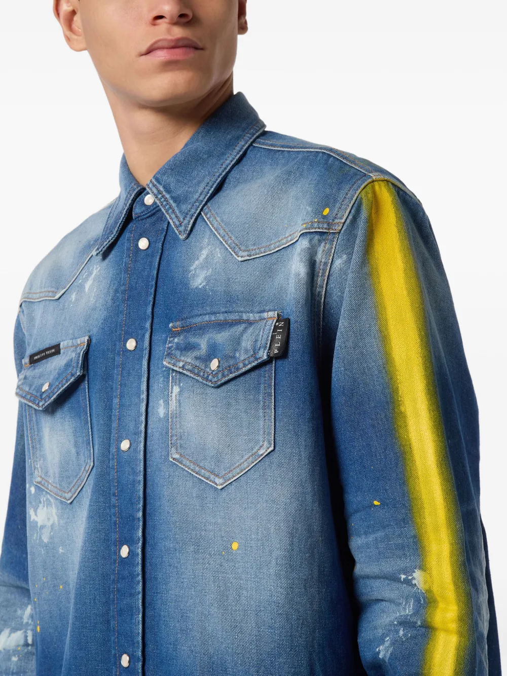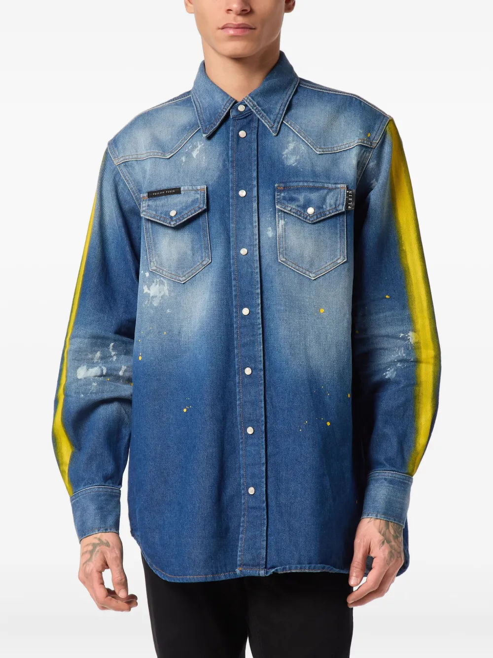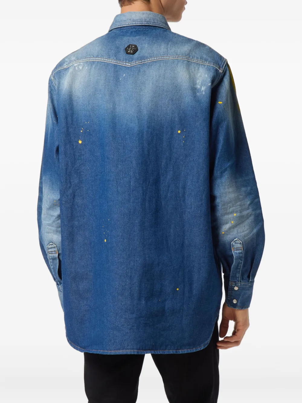 Джинсовая рубашка с эффектом разбрызганной краски Philipp Plein, синий