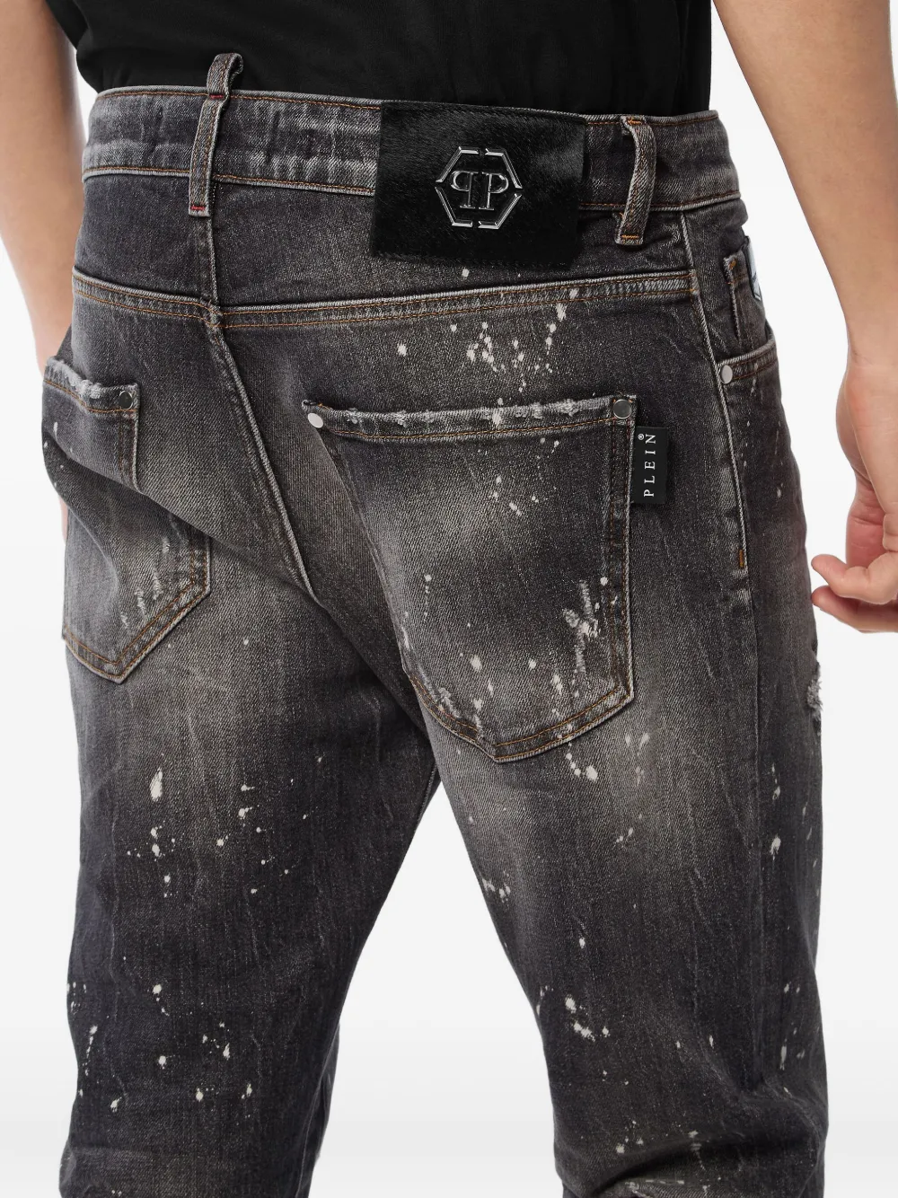 Джинсы с эффектом разбрызганной краски Philipp Plein, серый