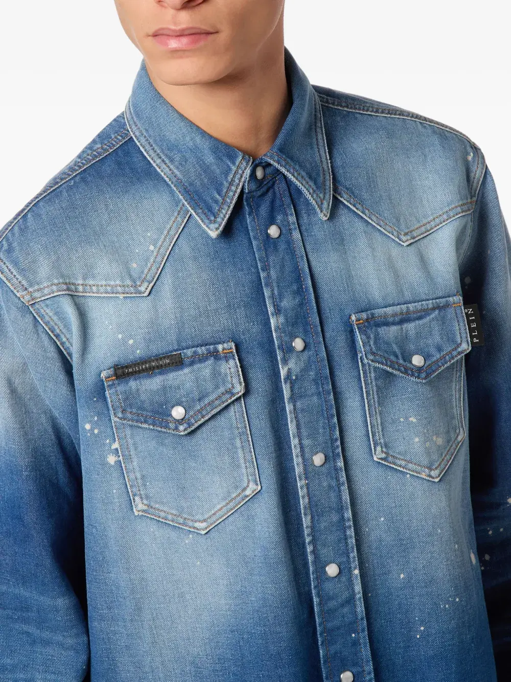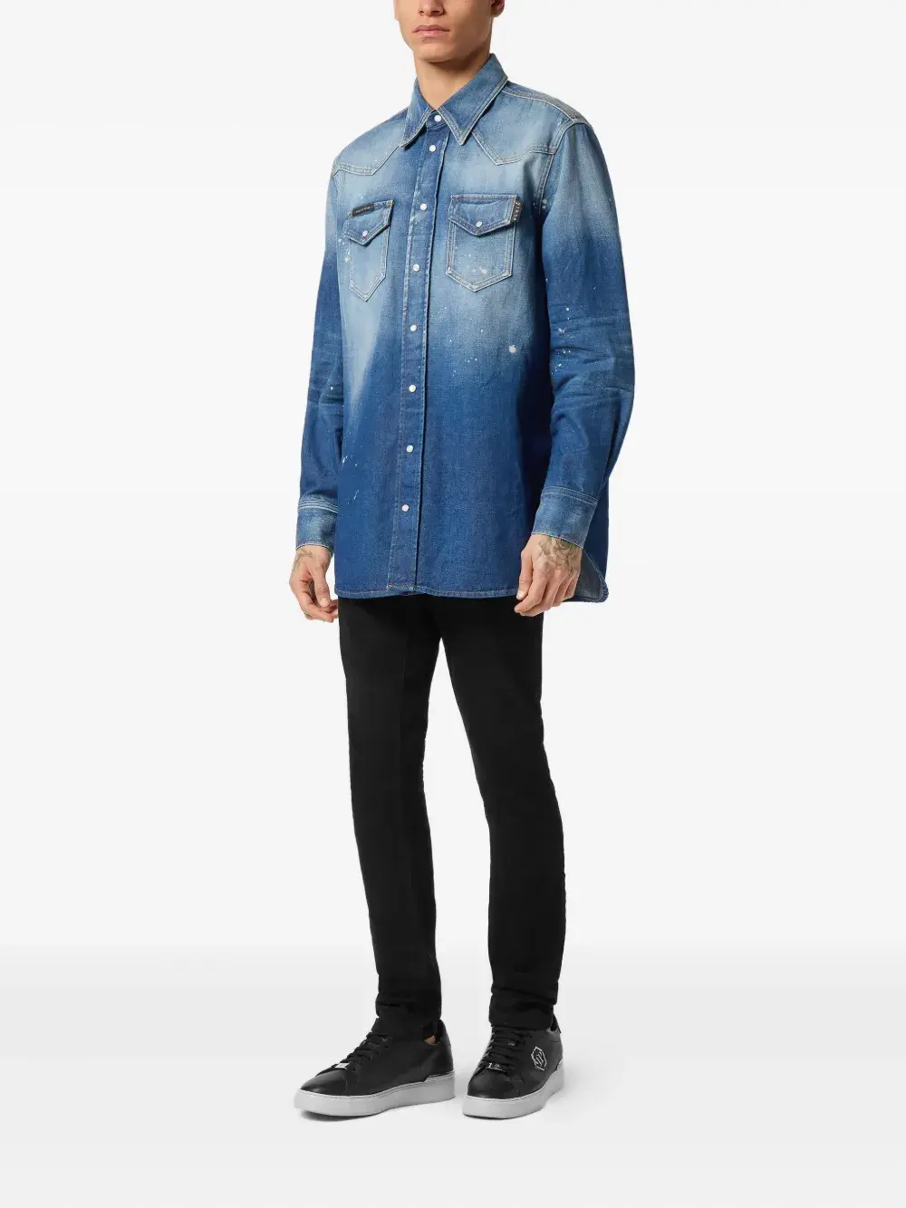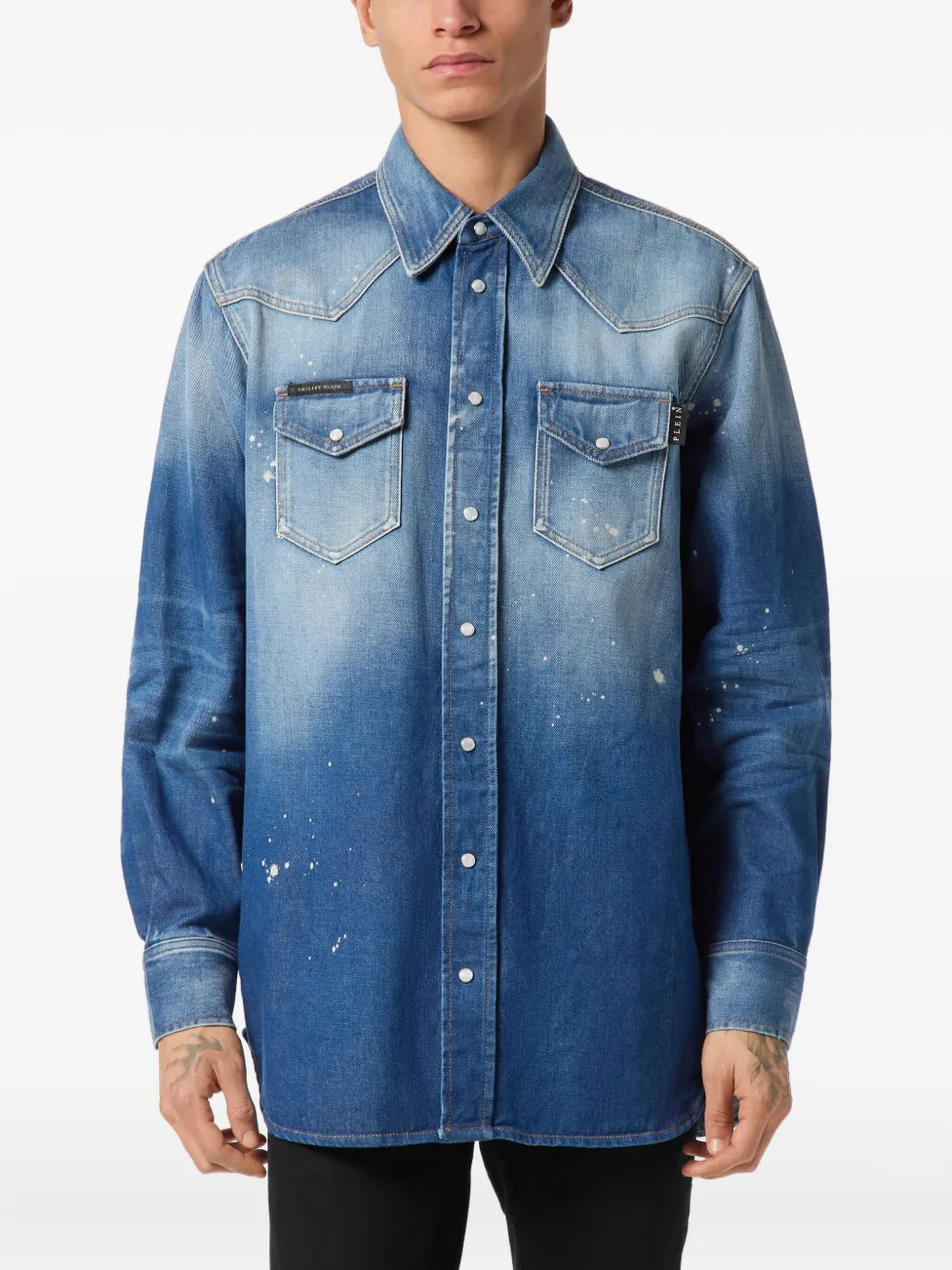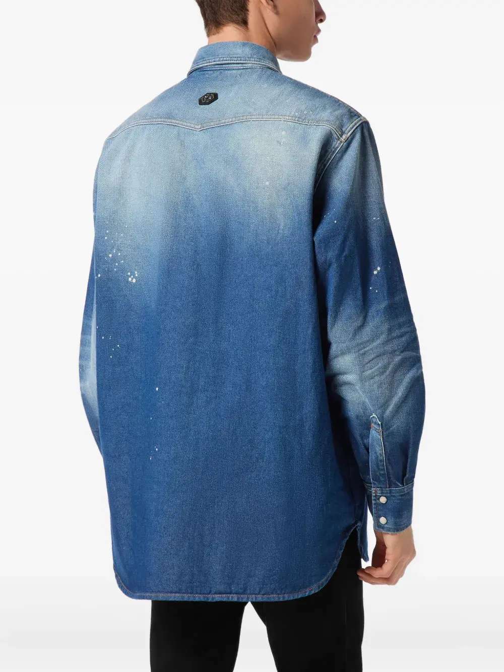 Рубашка с эффектом разбрызганной краски Philipp Plein, синий