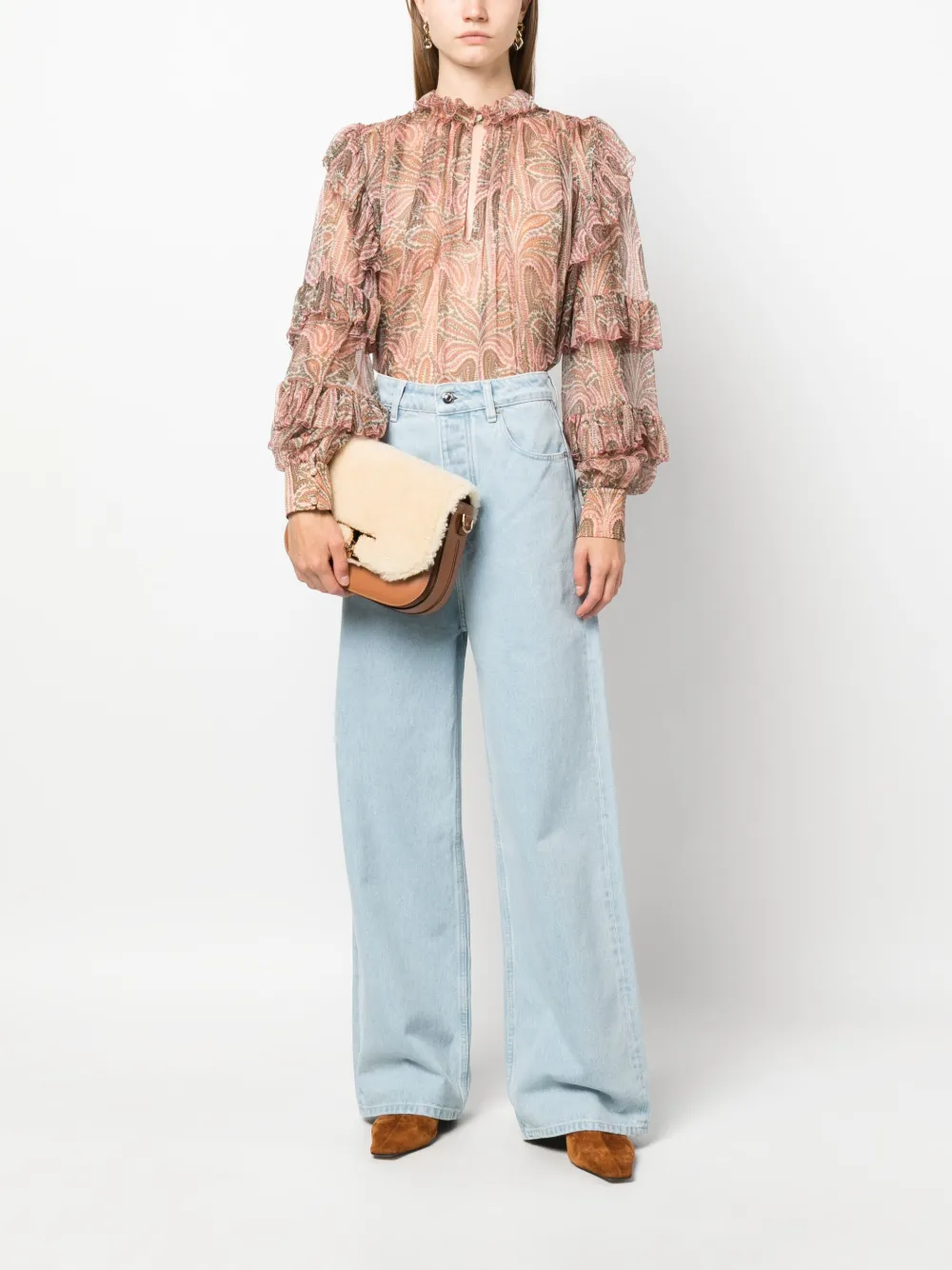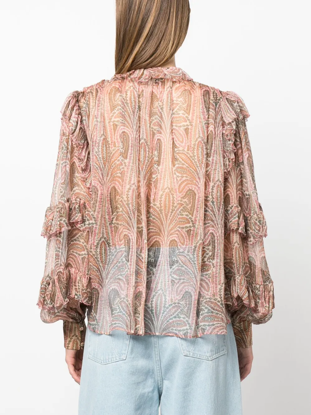 Блузка с принтом пейсли и оборками ETRO, розовый